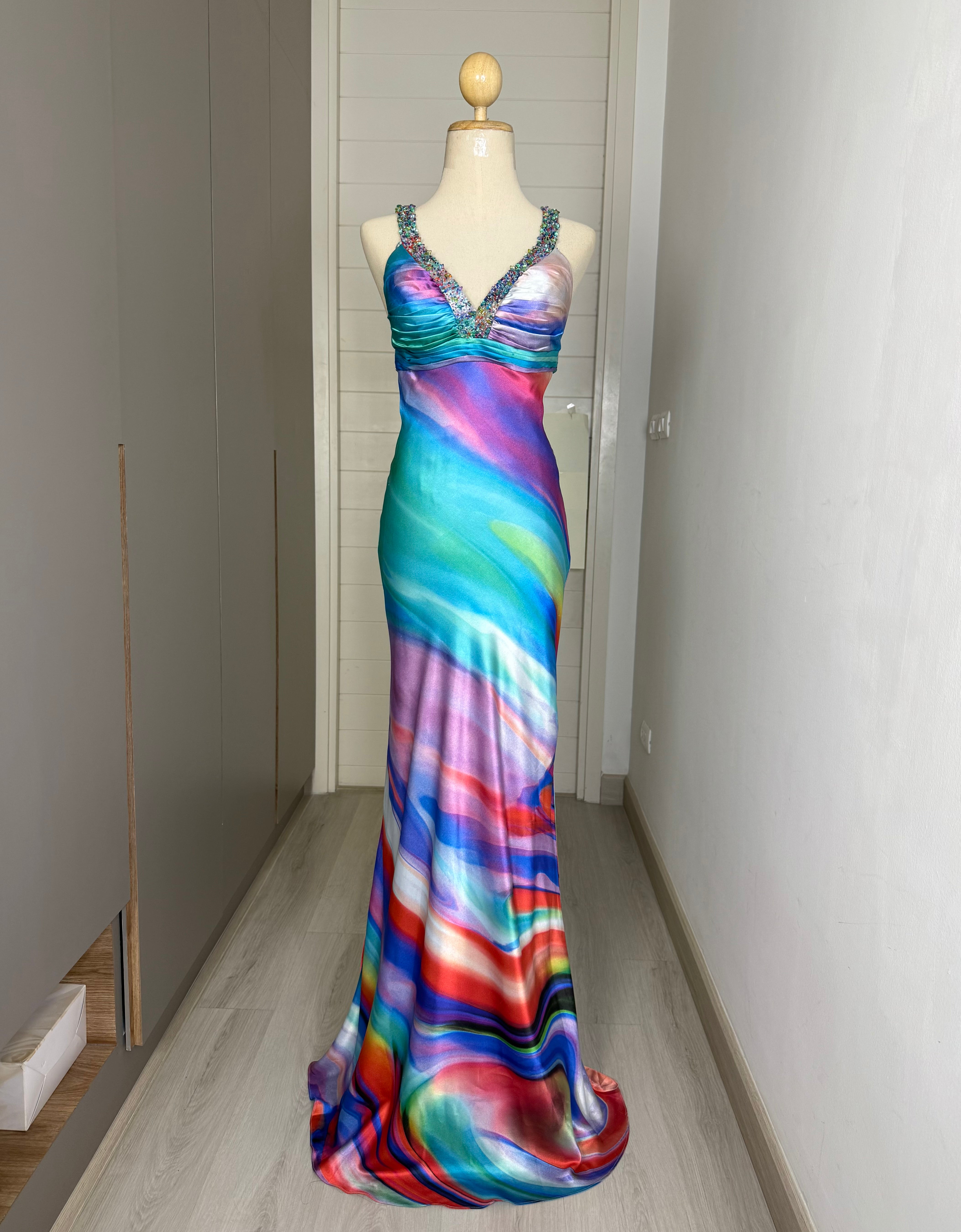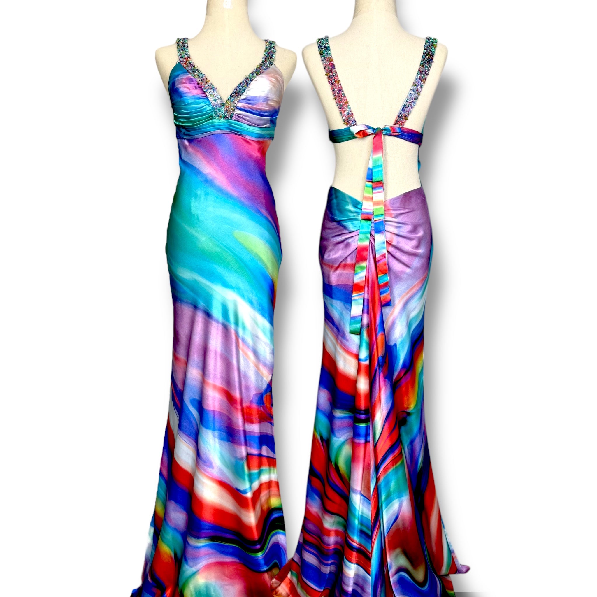 V69 Vintage Super Rare La Femme Rainbow Evening Gown (XS)