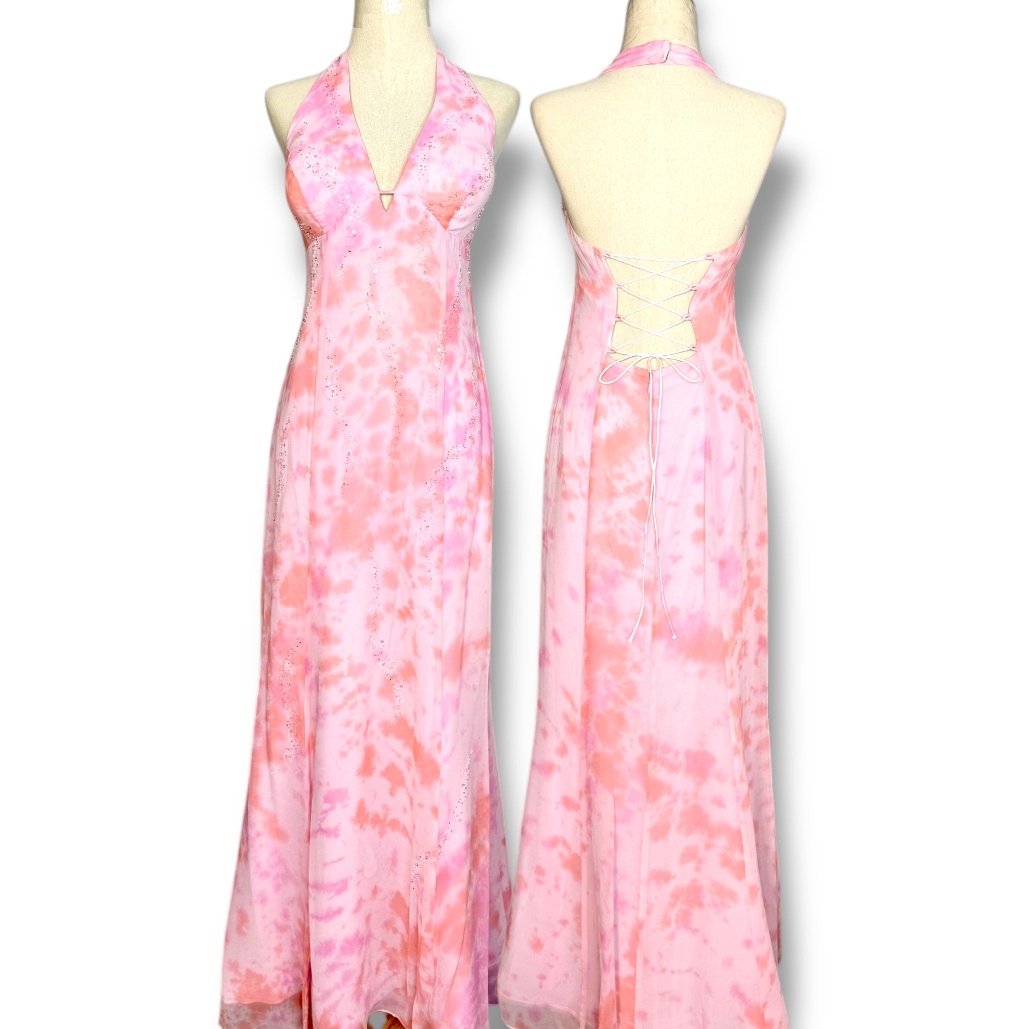 V65 Vintage Super Rare Light Pink Evening Gown (XS-M) (ผูกปรับระดับได้)