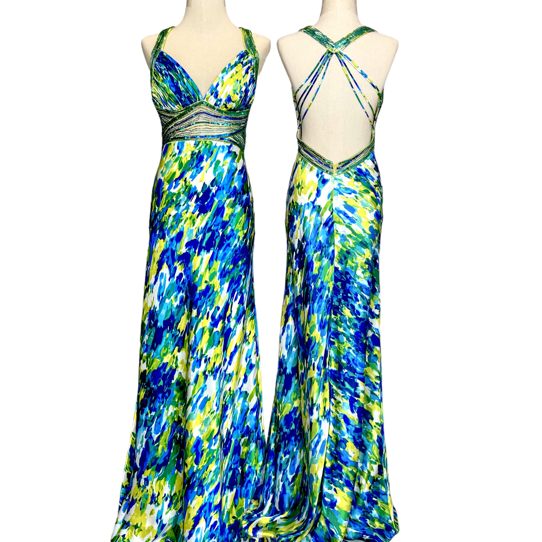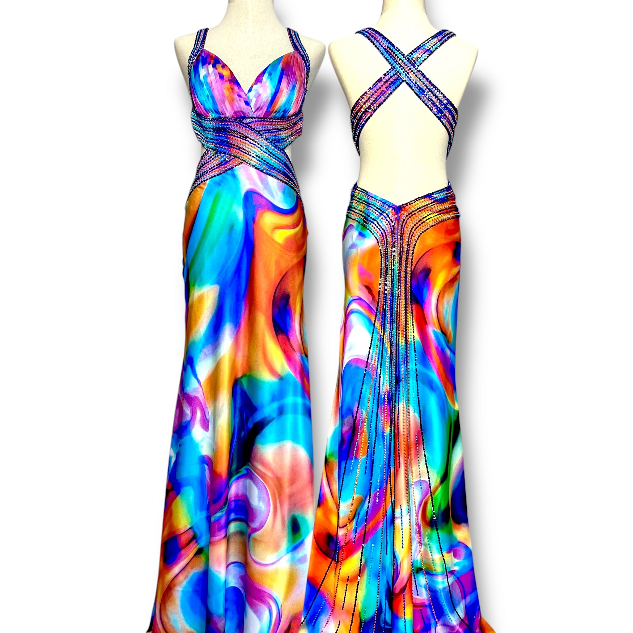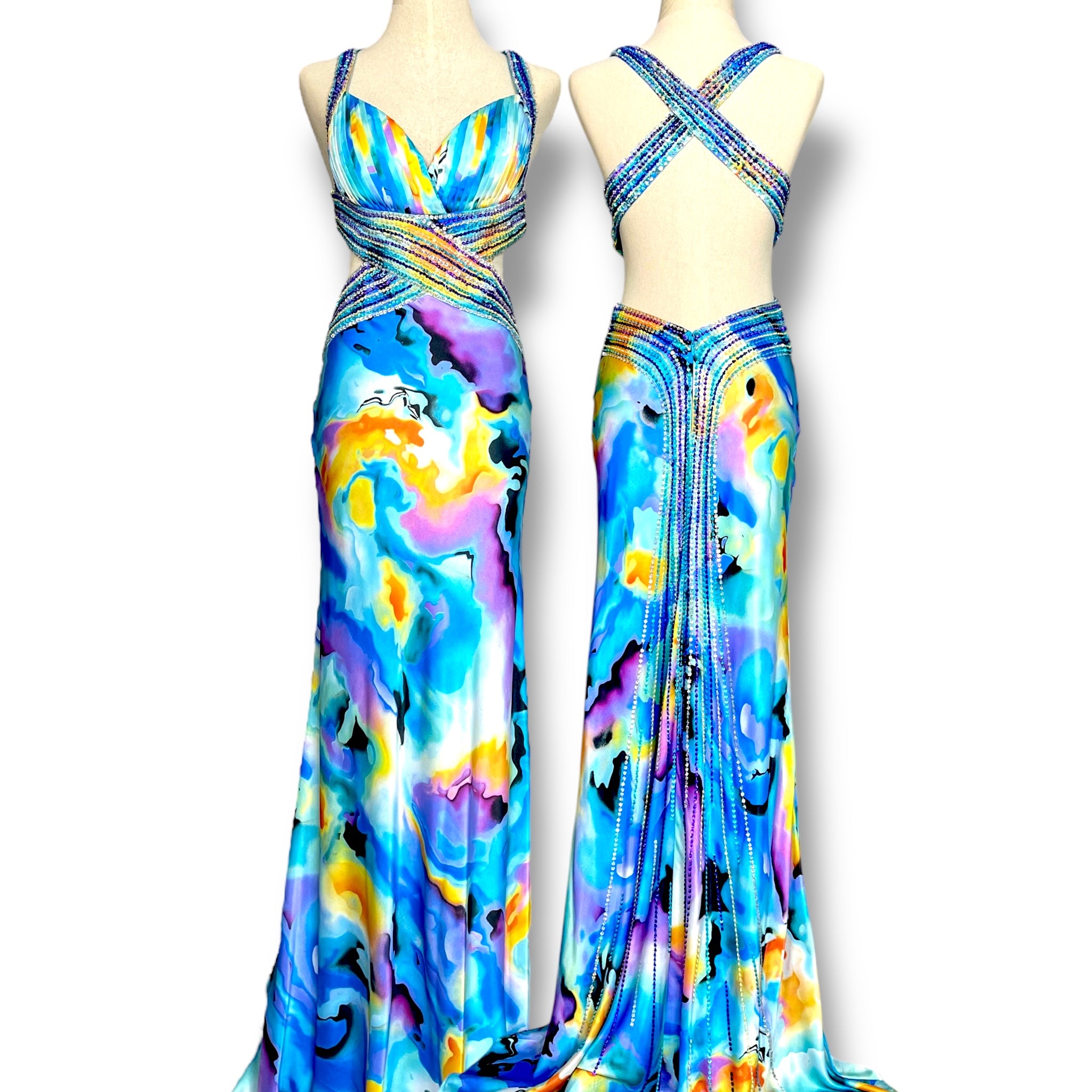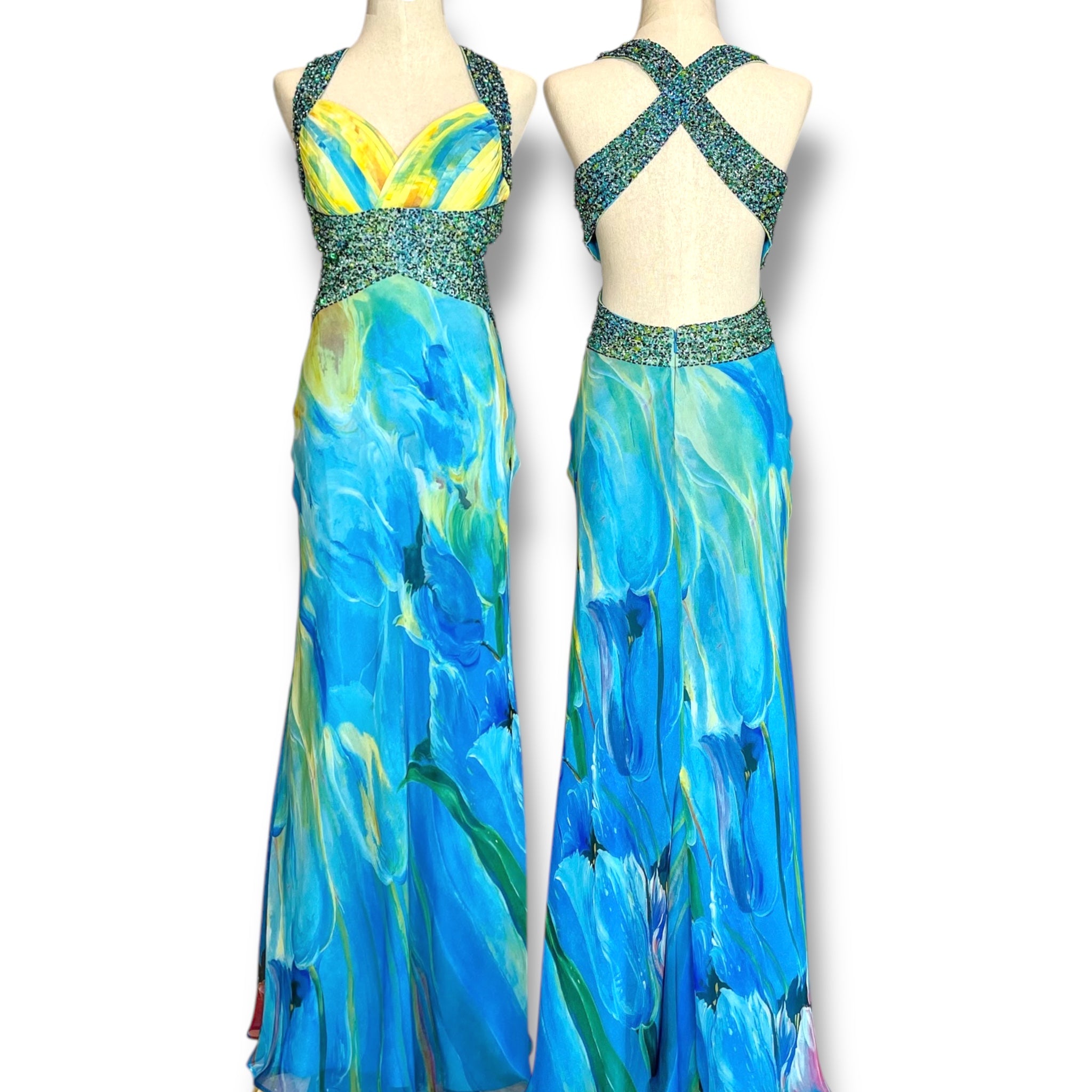 V43 Vintage Super Rare La Femme Water Color Evening Gown (XS)