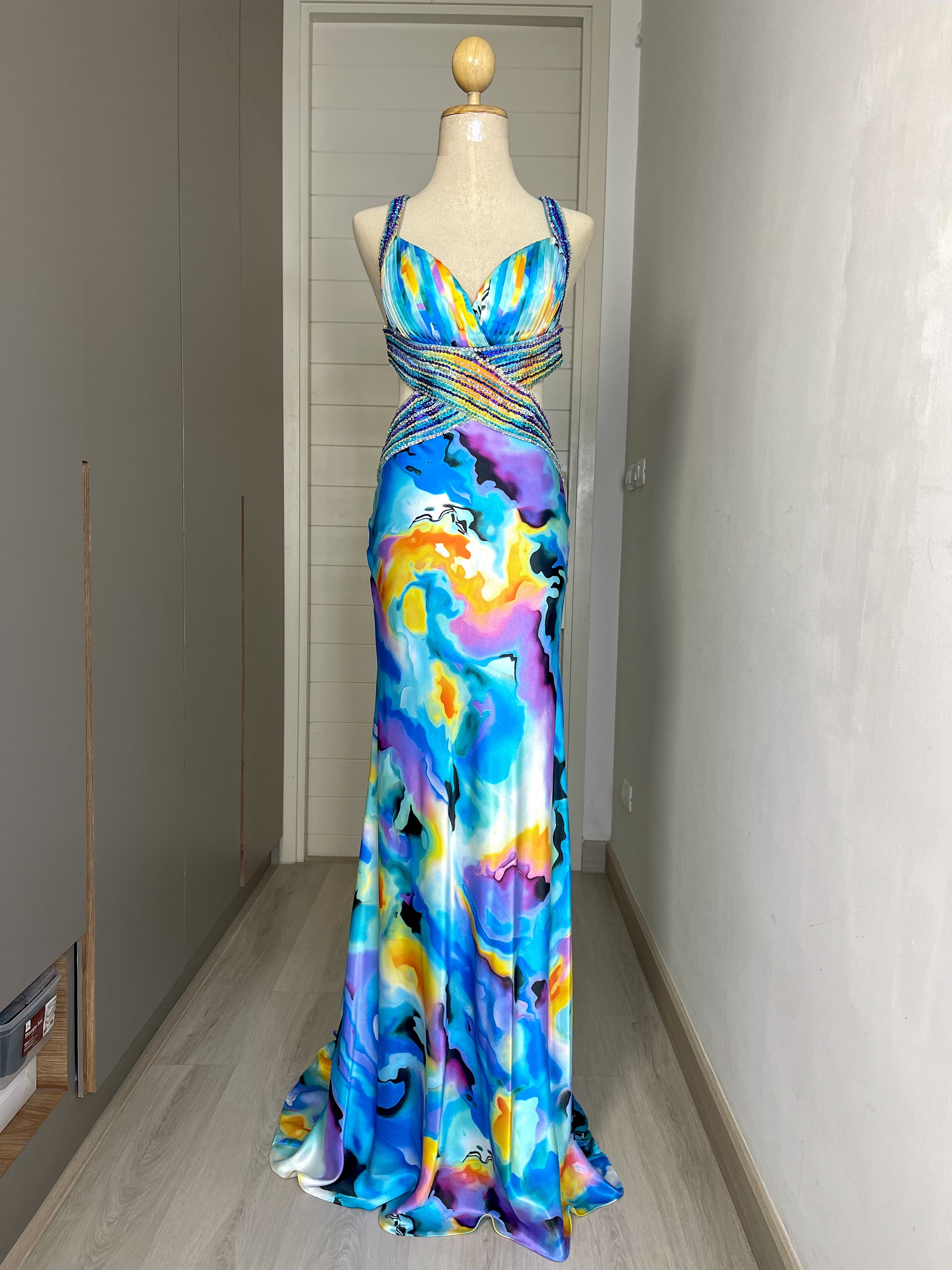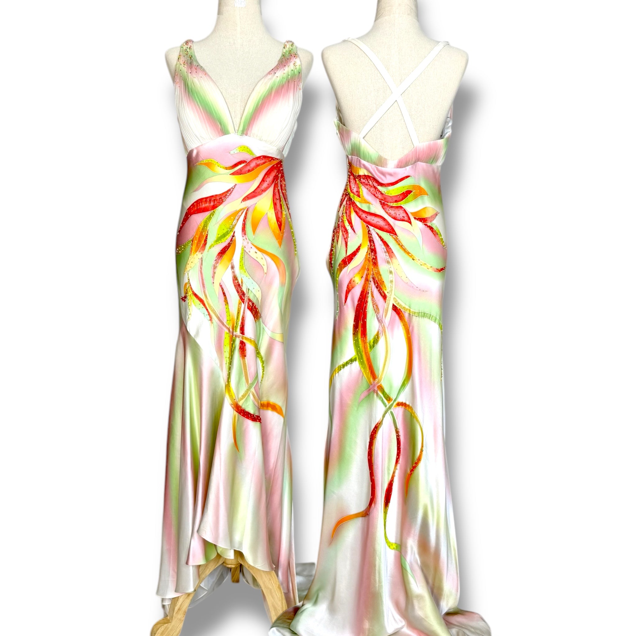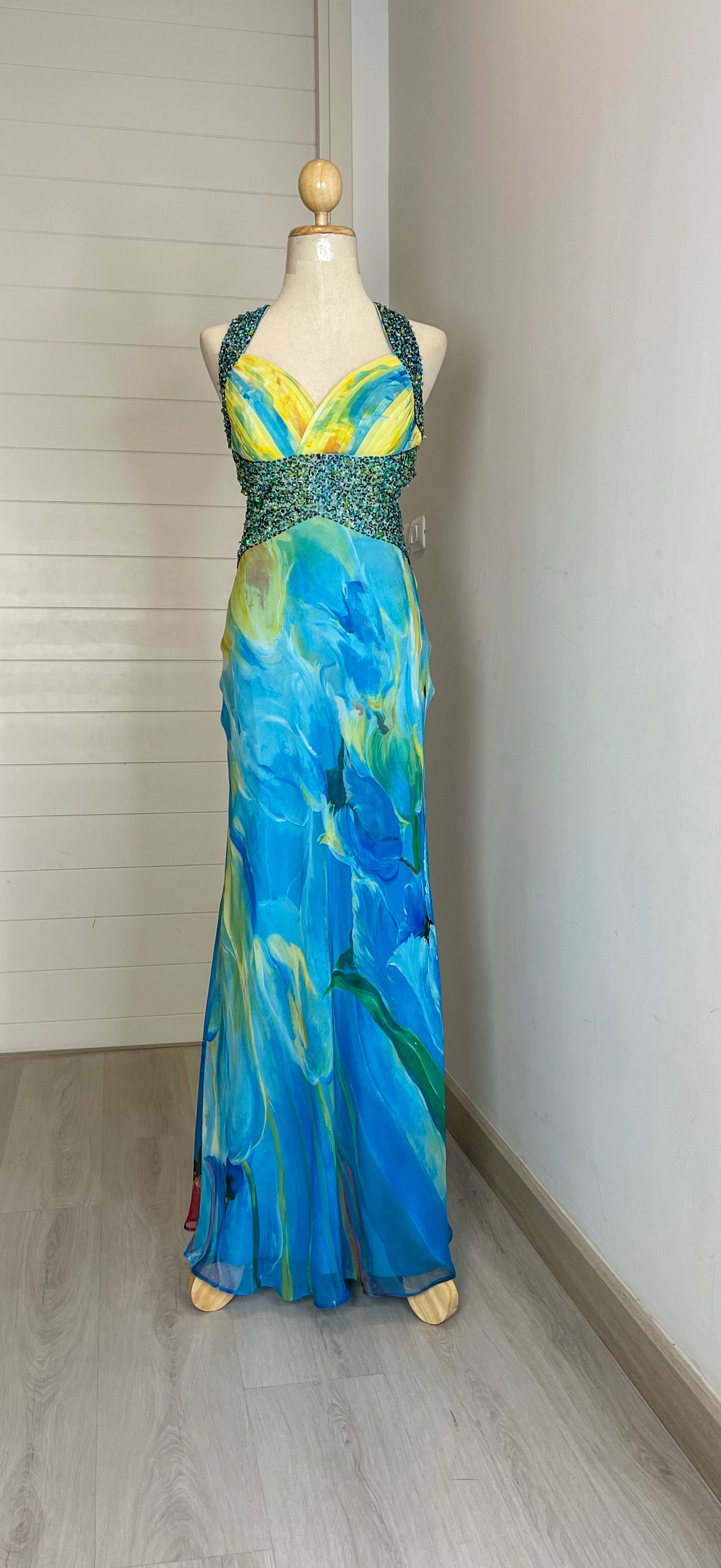 V43 Vintage Super Rare La Femme Water Color Evening Gown (XS)