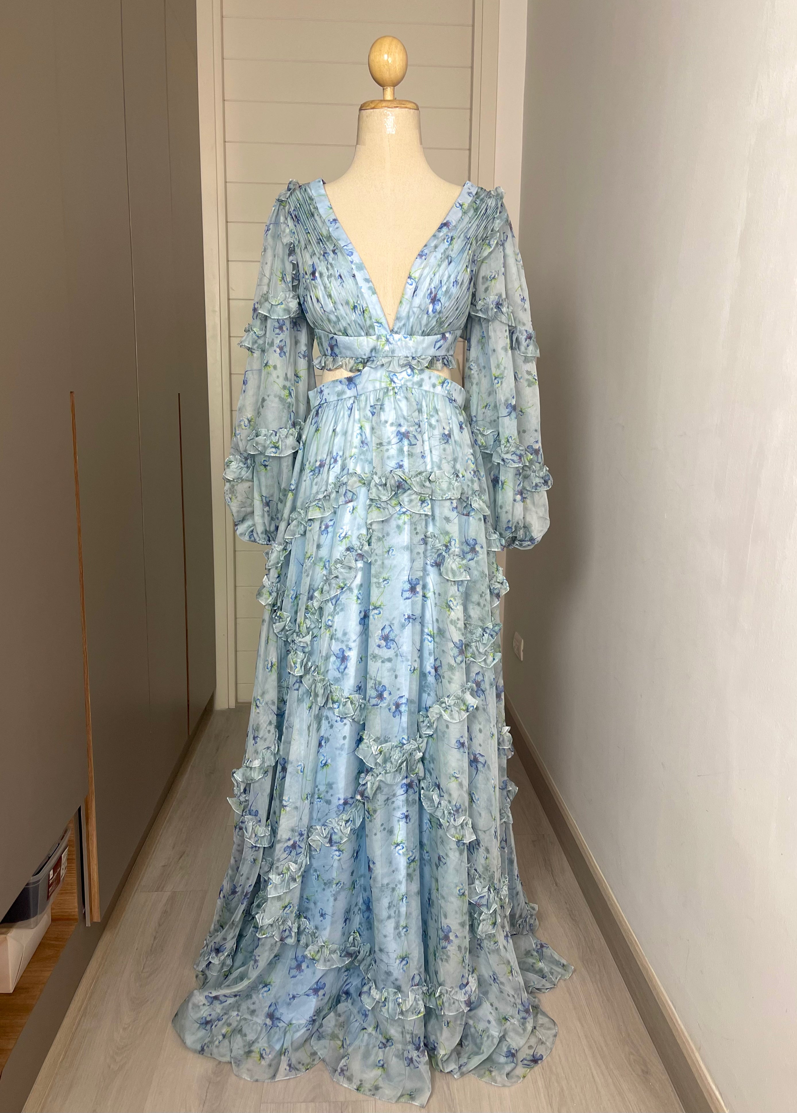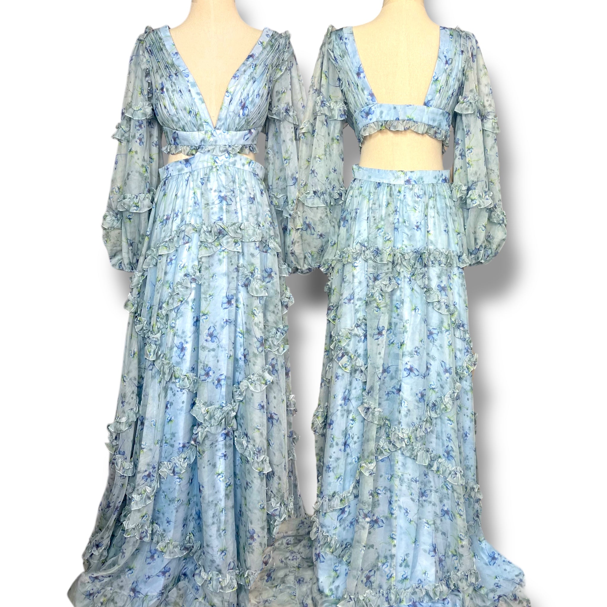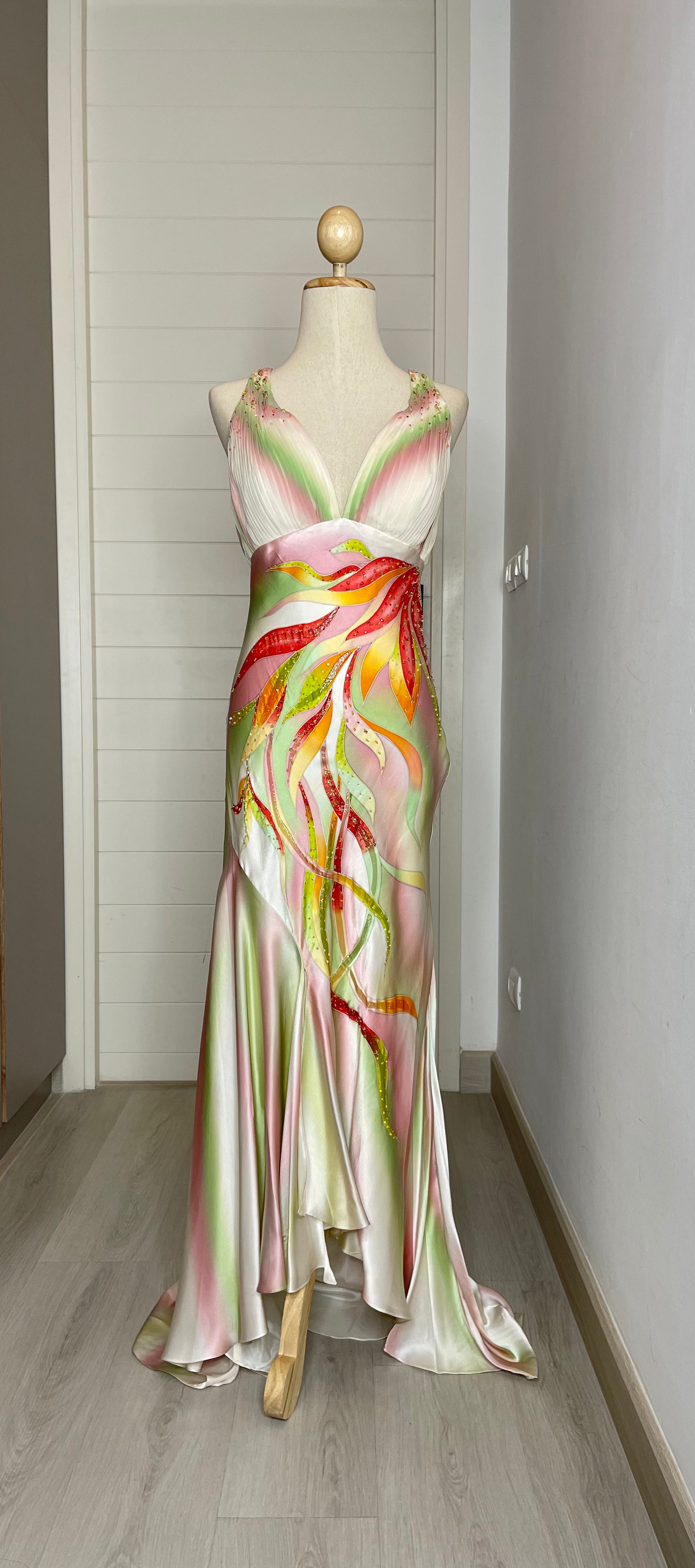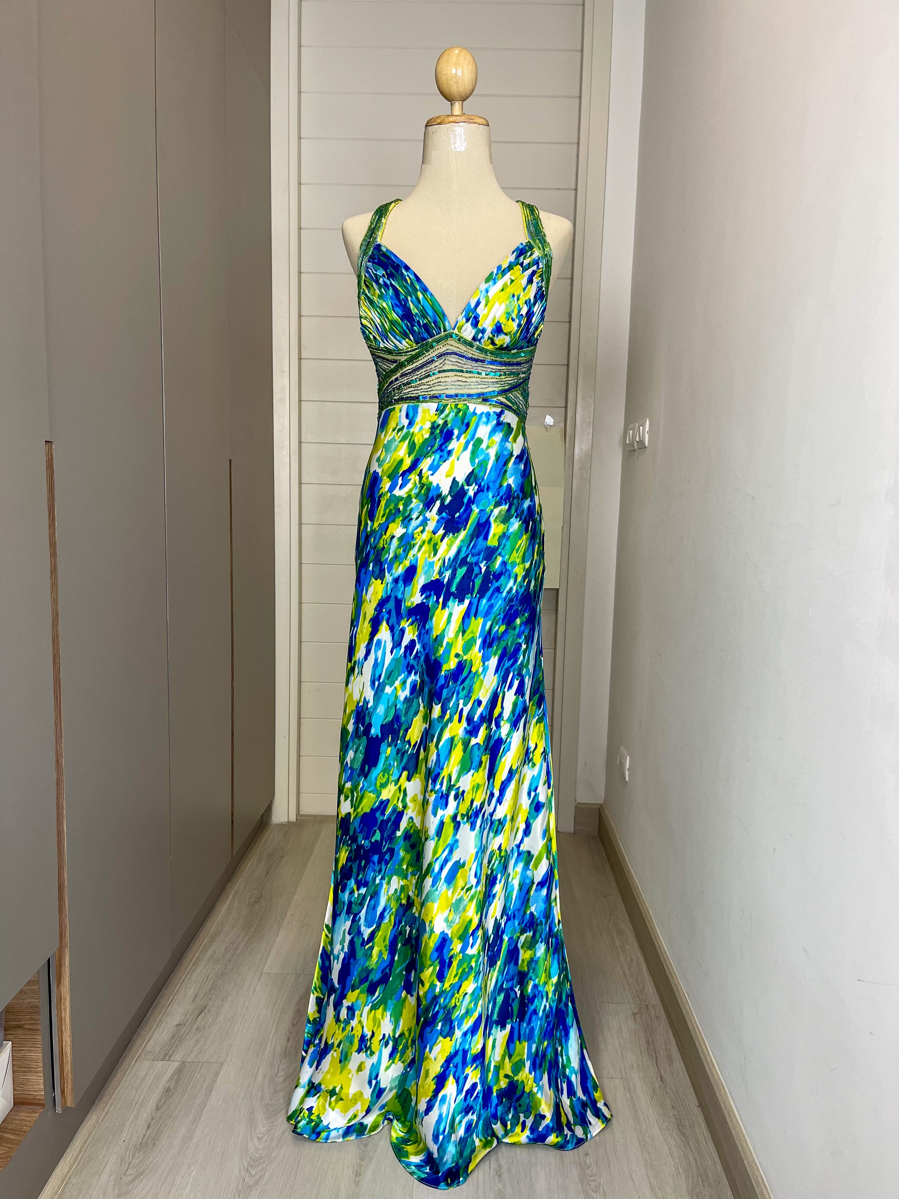 V43 Vintage Super Rare La Femme Water Color Evening Gown (XS)