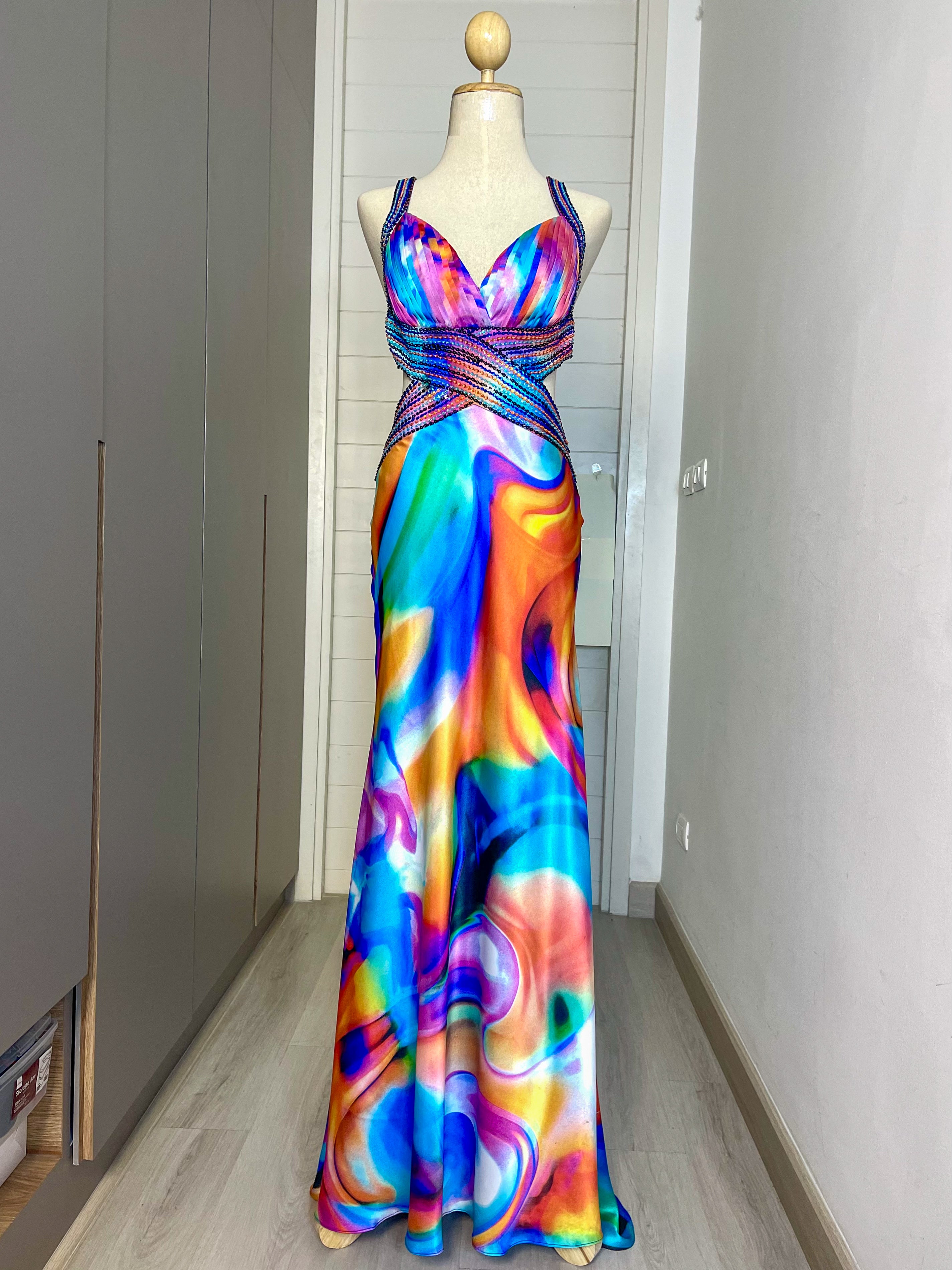 V44 Vintage Super Rare La Femme Colorful Evening Gown (XS)