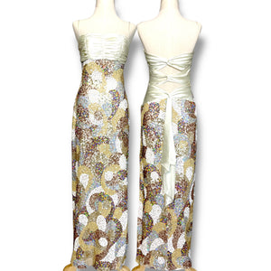 หนึ่งในชุดหายากจากแบรนด์ "Camille La Vie" ถูกผลิตราวๆปี 1990s - 2000s ไม่มีผลิตและจำหน่ายแล้วในปัจจุบัน สีแชมเปญ ดีไซน์ปักเลื่อมสลับสี ใส่ออกมาแล้วขับผิวมากๆ