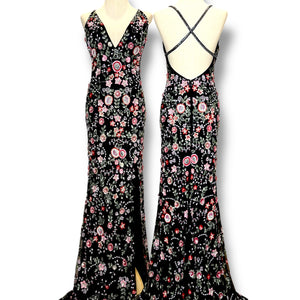 ชุดวินเทจหายากจากปี 2000s จากแบรนด์ Primavera Couture หนึ่งในแบรนด์ชุดราตรีระดับโลกที่โด่งดังด้านงานปักแน่นละเอียดตลอดตัว รุ่นนี้โดดเด่นด้วยลวดลายดอกไม้และลายดาวที่จัดเรียงอย่างมีชั้นเชิงบนพื้นผ้ากำมะหยี่สีดำ สะท้อนแสงอย่างงดงามทุกมุมมอง