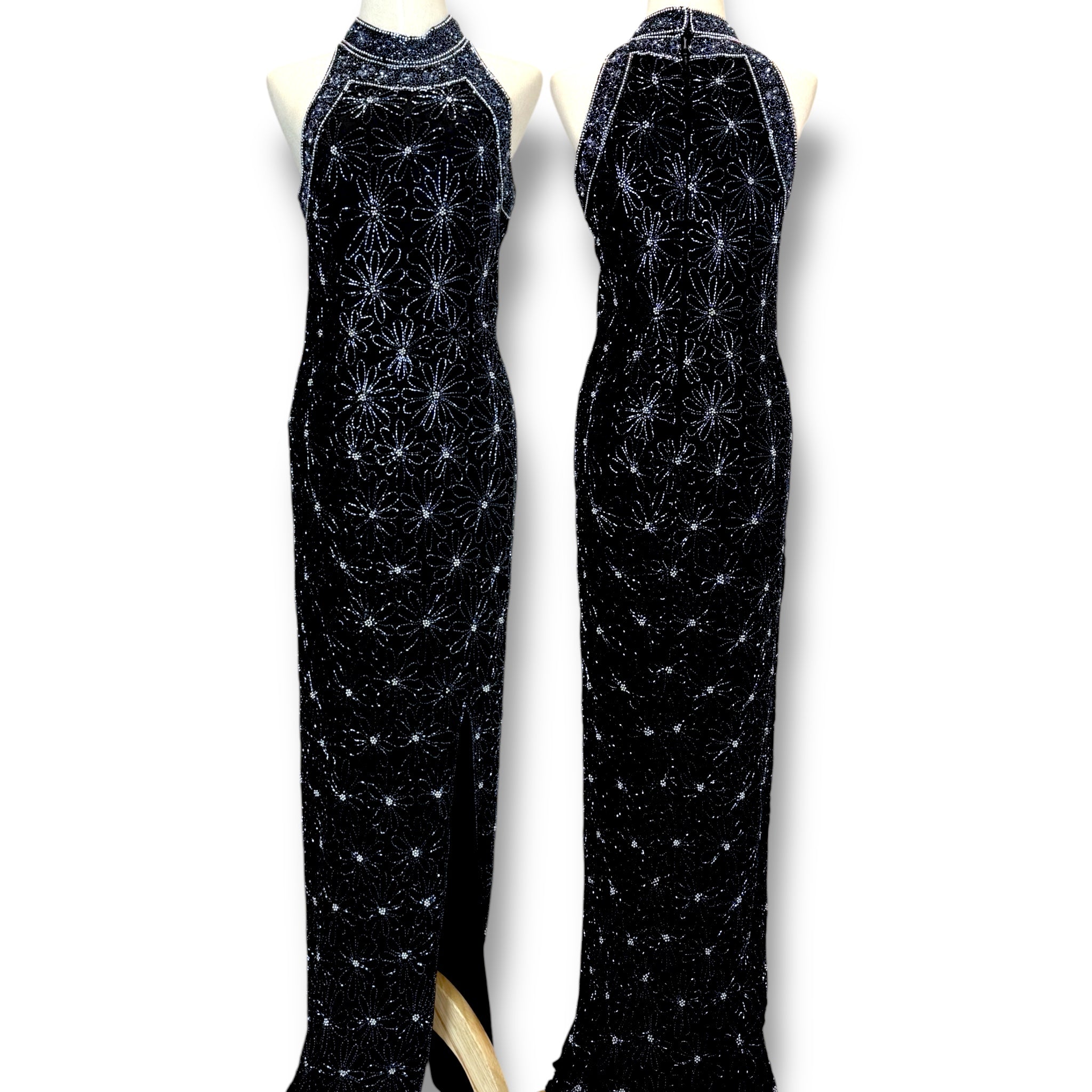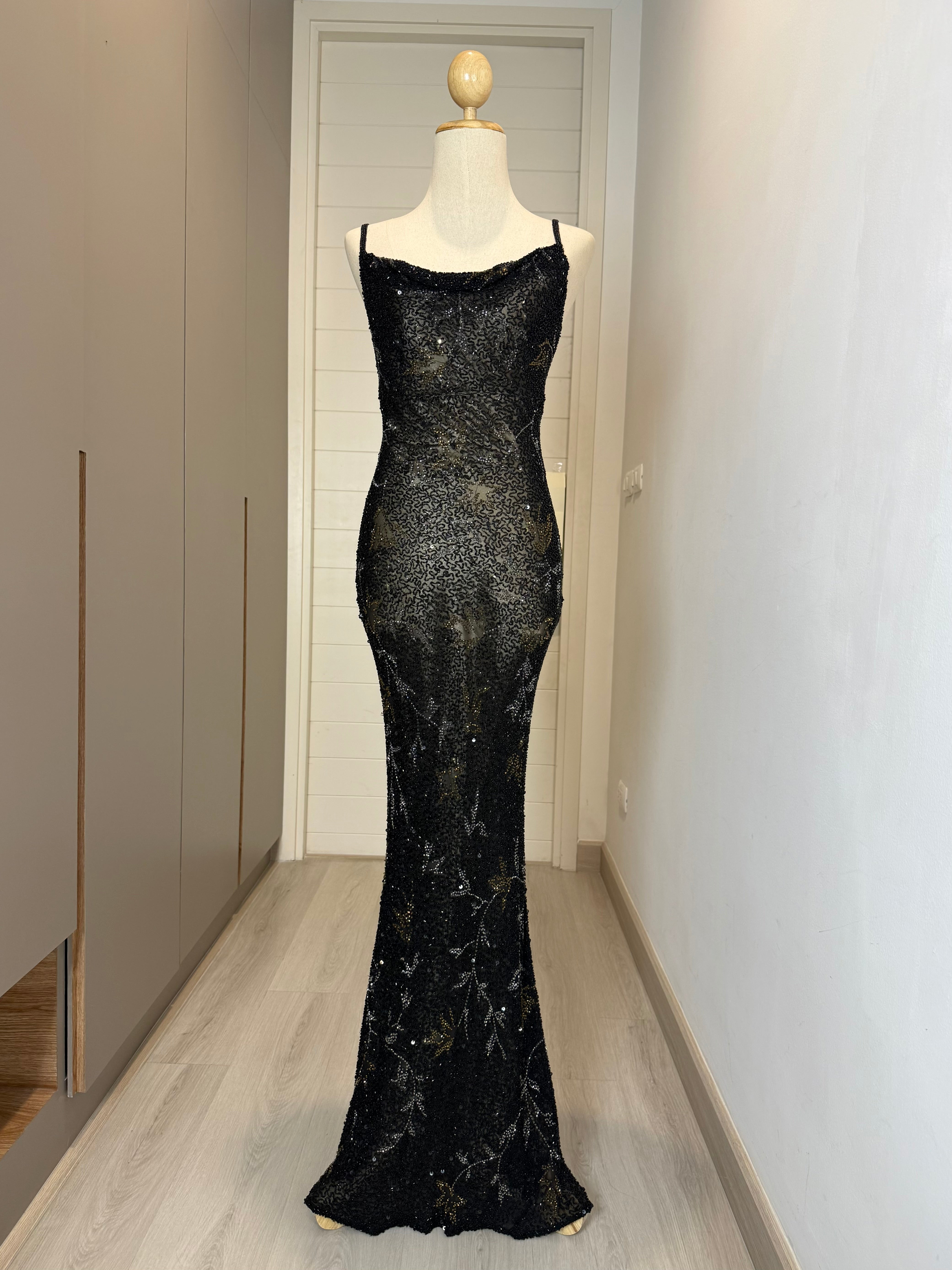 V145 Vintage Scala Black Sequin Gown (XS-S)
