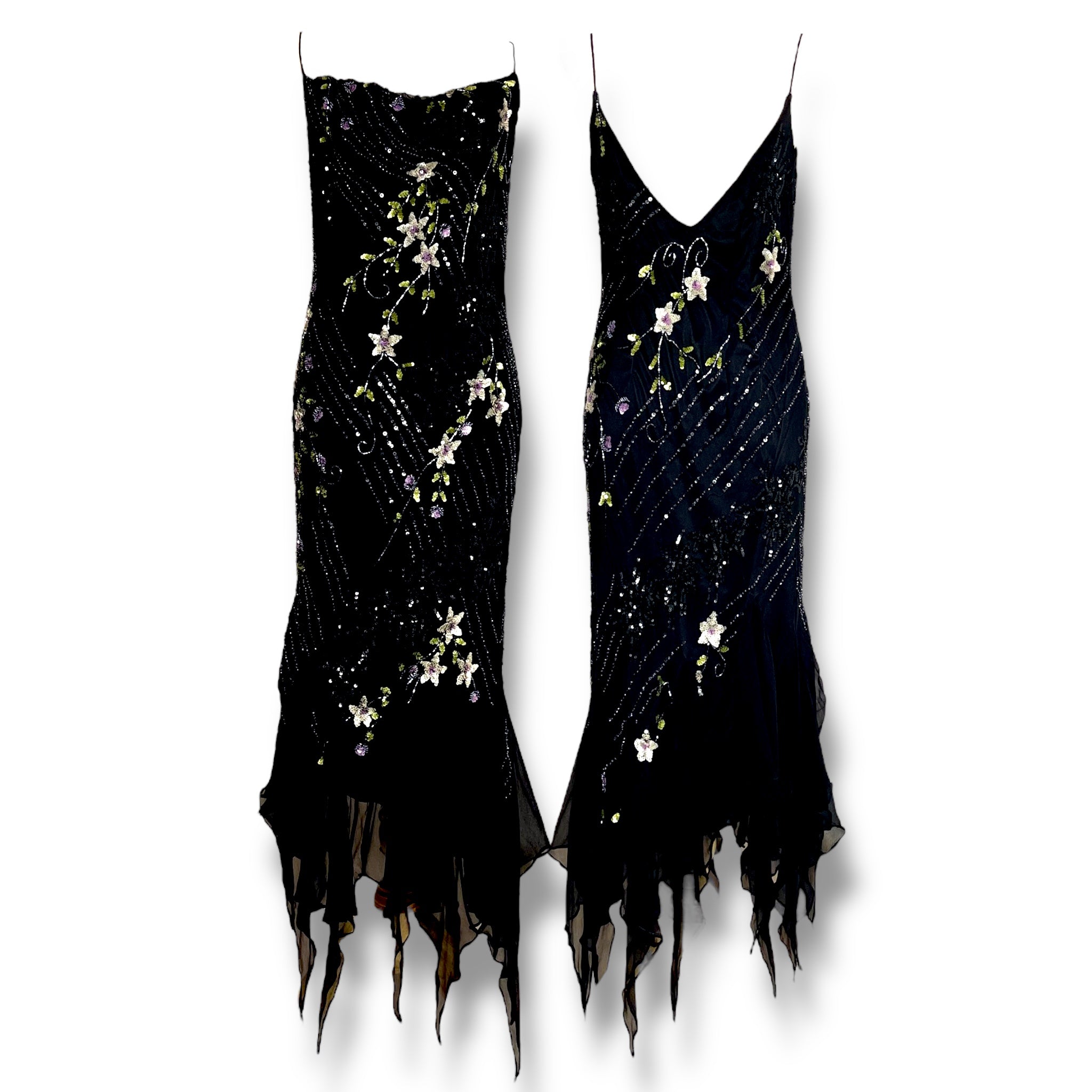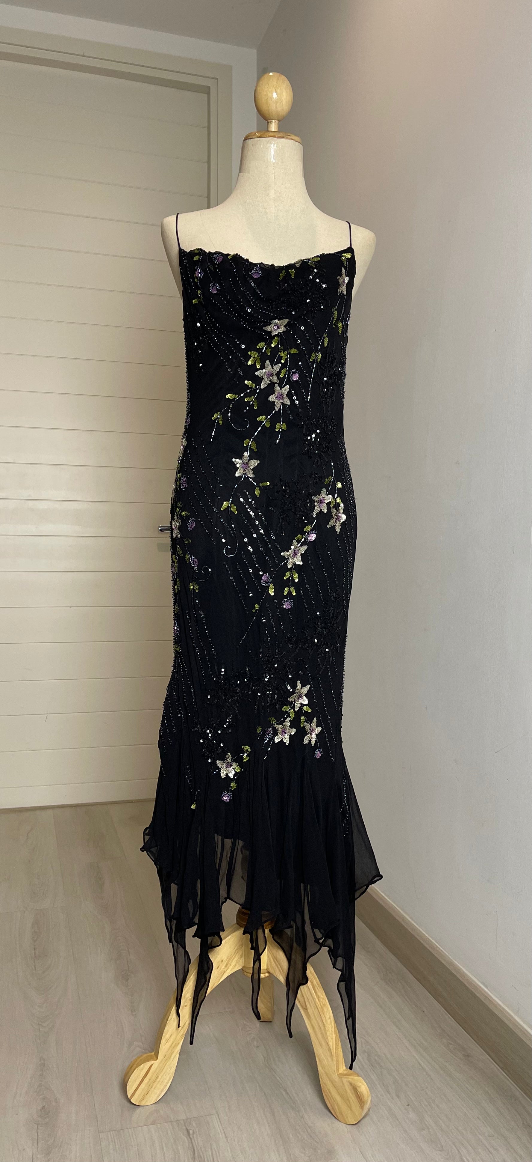 V04 Vintage Staney Floral Black Dress (XS-M) (ทรงเฉลียงเข้ารูปตามตัว)