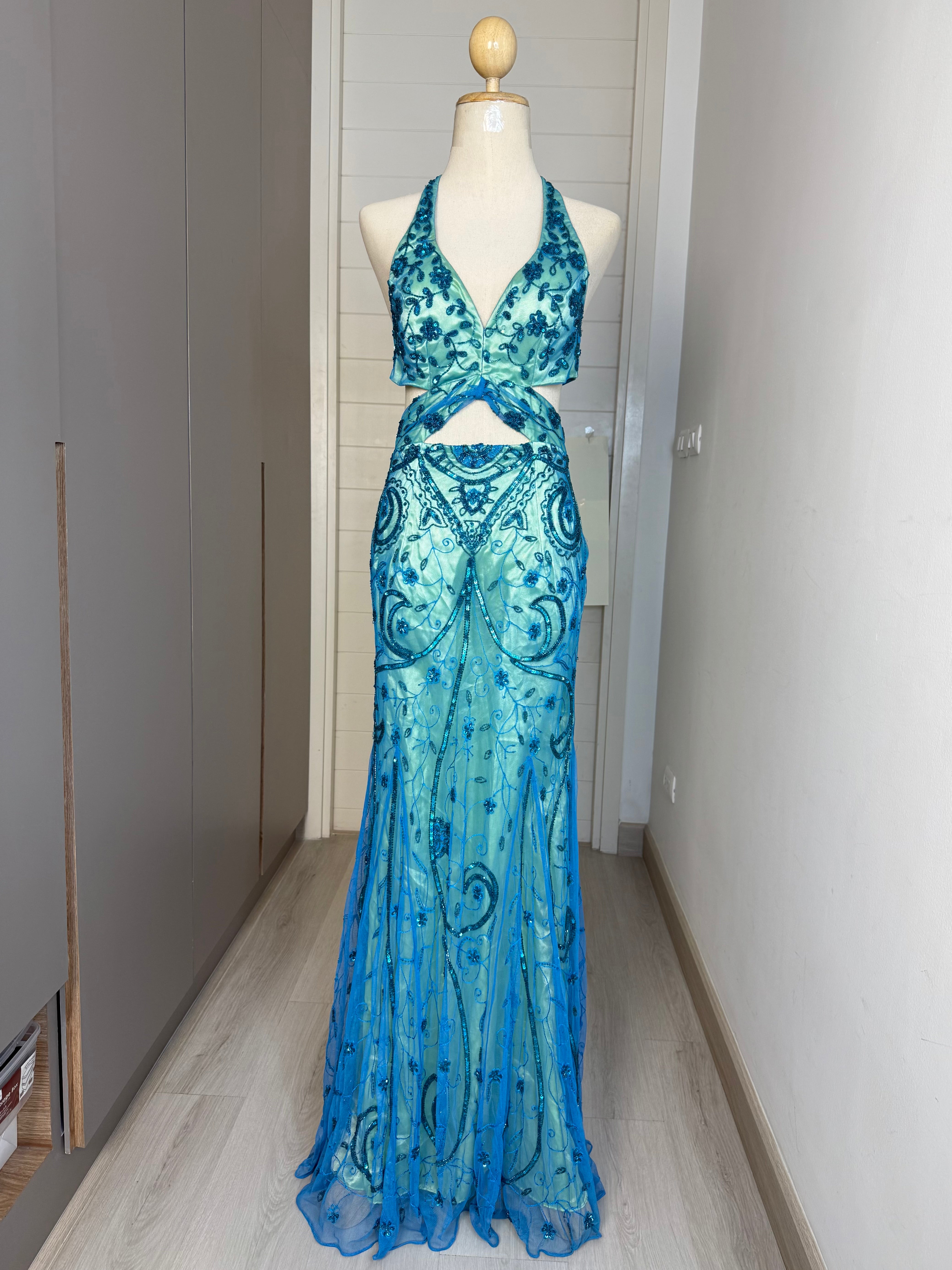 V59 Vintage Super Rare Cache Teal Evening Gown (S)