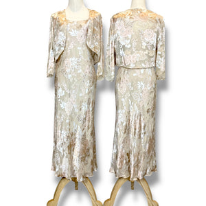 V217 Vintage Alex Evenings Cream Gold Burnout Dress (S)