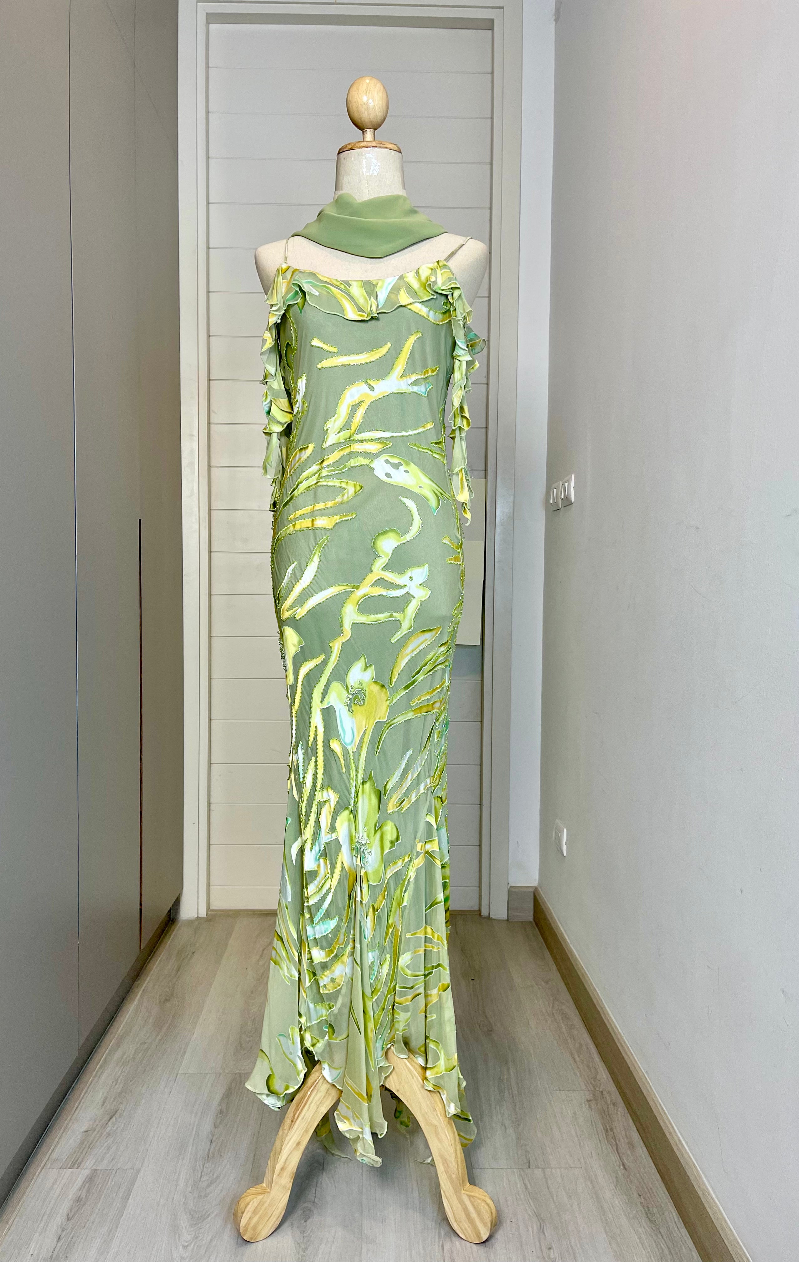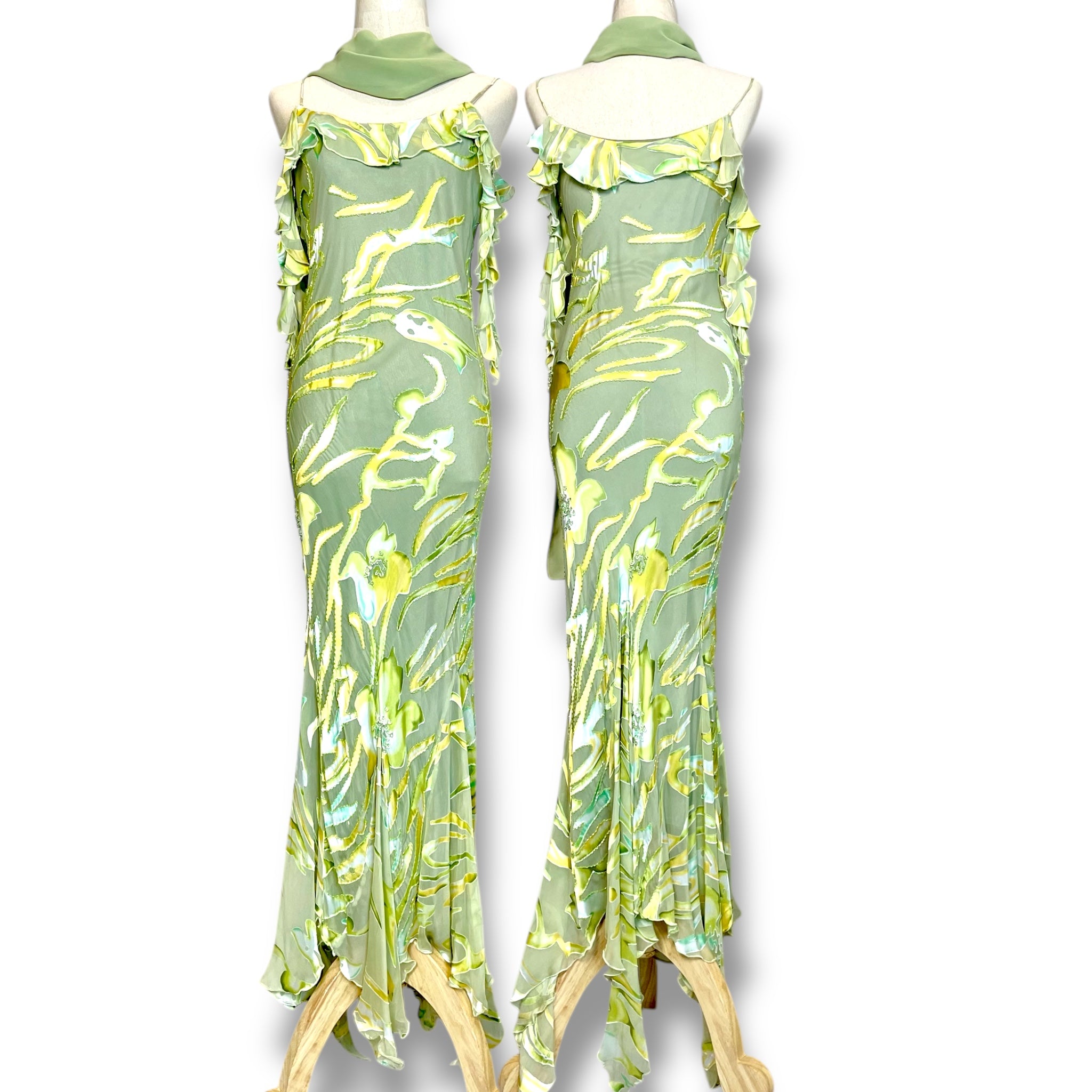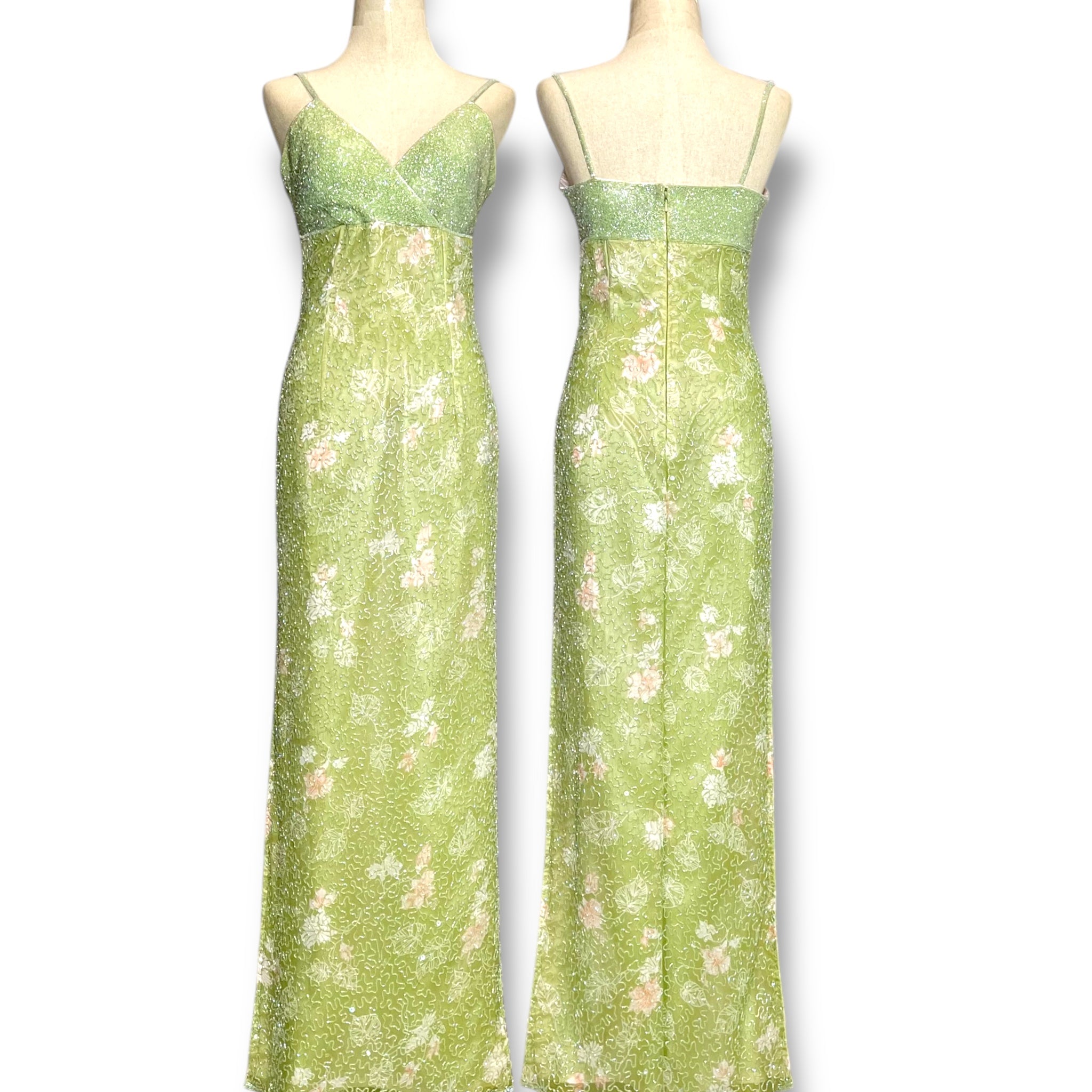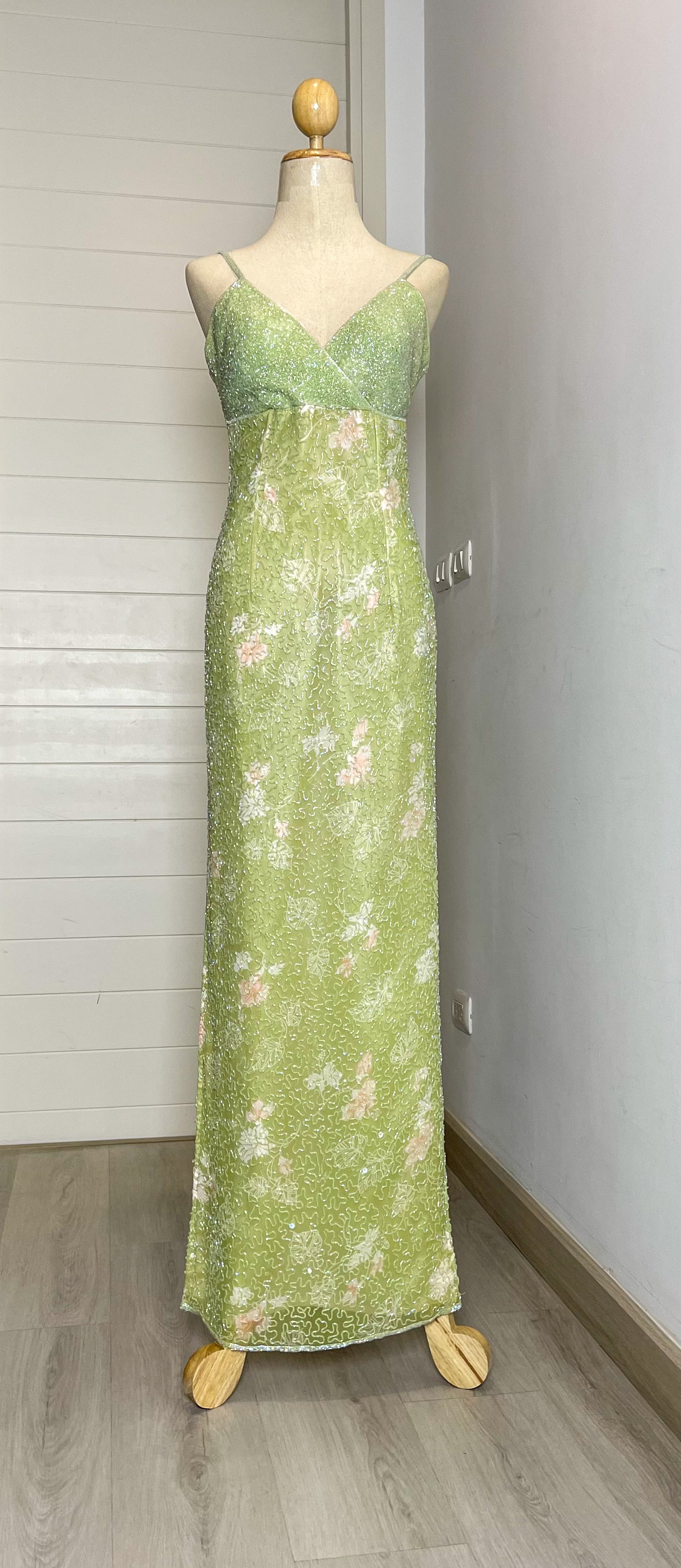 V175 Vintage Super Rare Lime Blossom Crystal Gown (M) (ถูกตัดความยาว สั้นกว่าตัวอื่น)