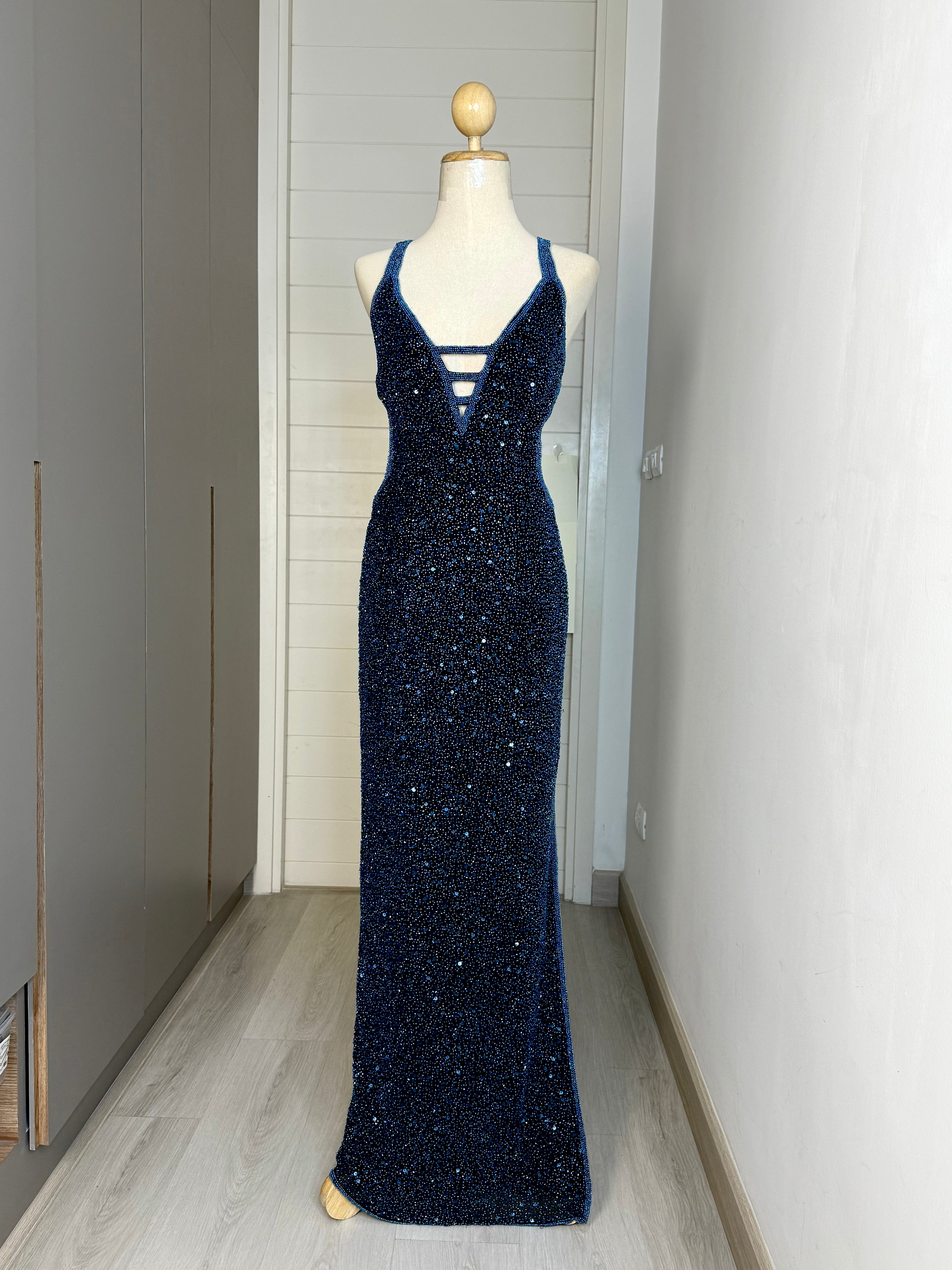 V86 Vintage Scala Midnight Blue Evening Gown (S-M)