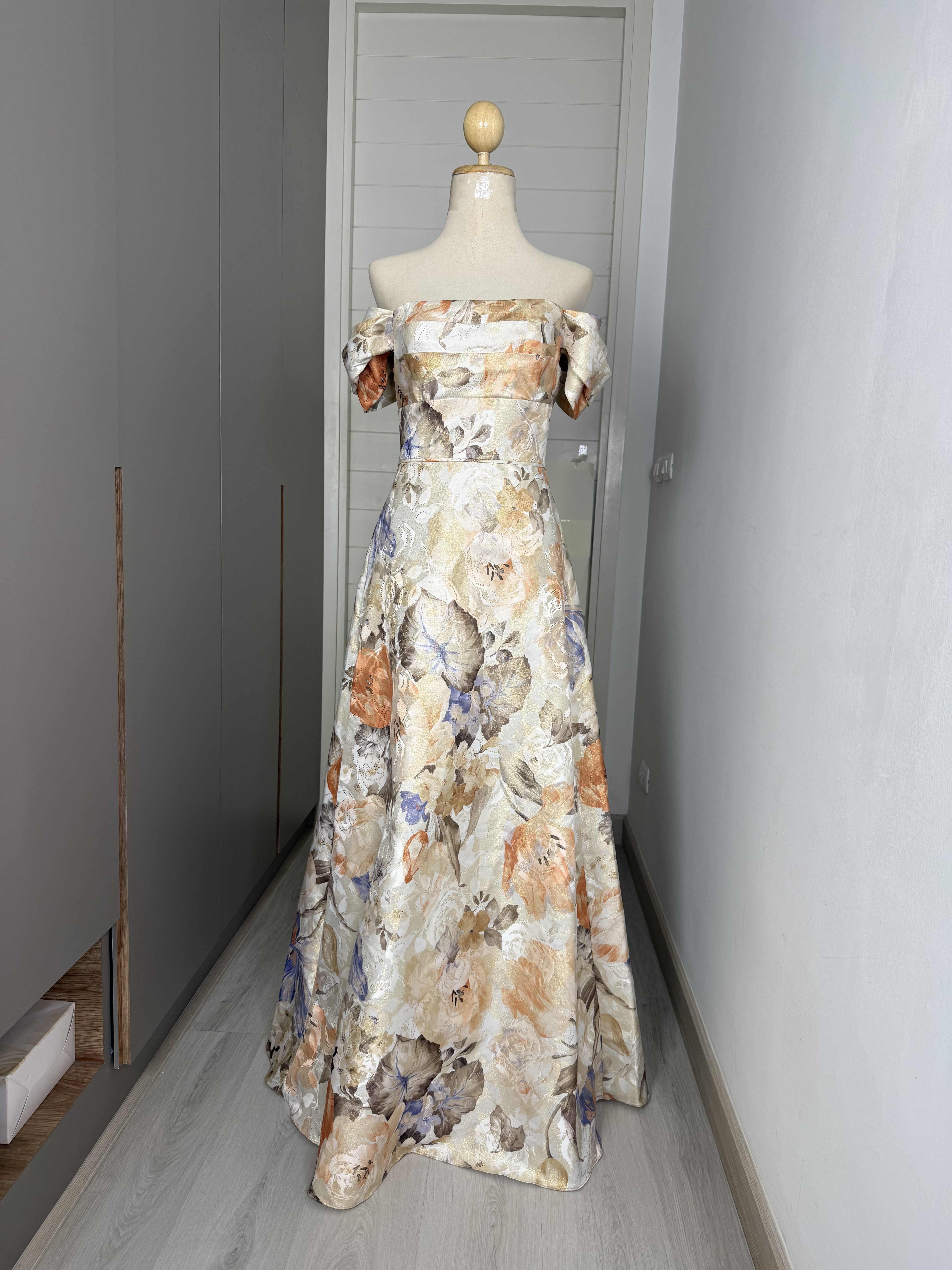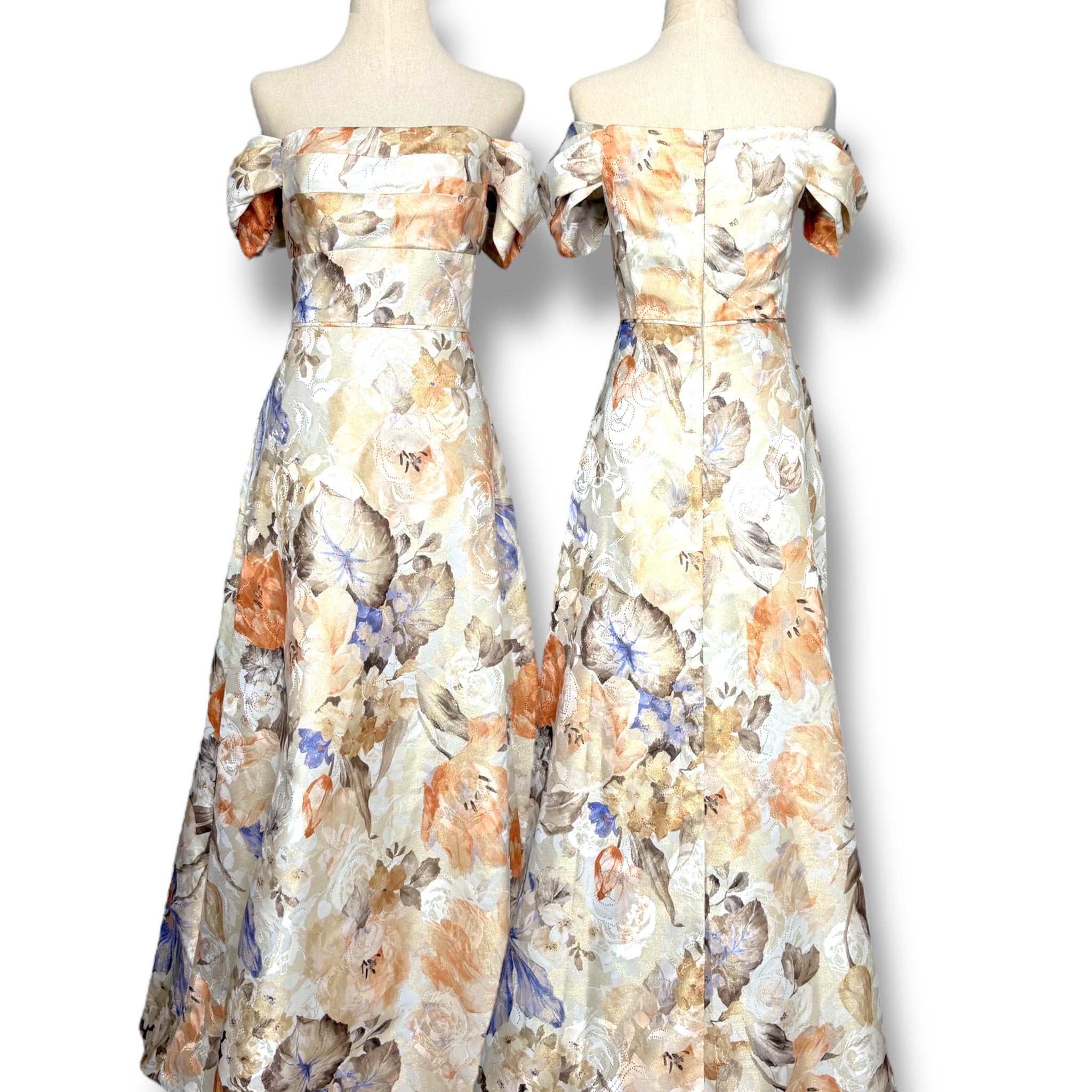 V100 Aidan Mattox Off-Shoulder Floral Gown (S-M)