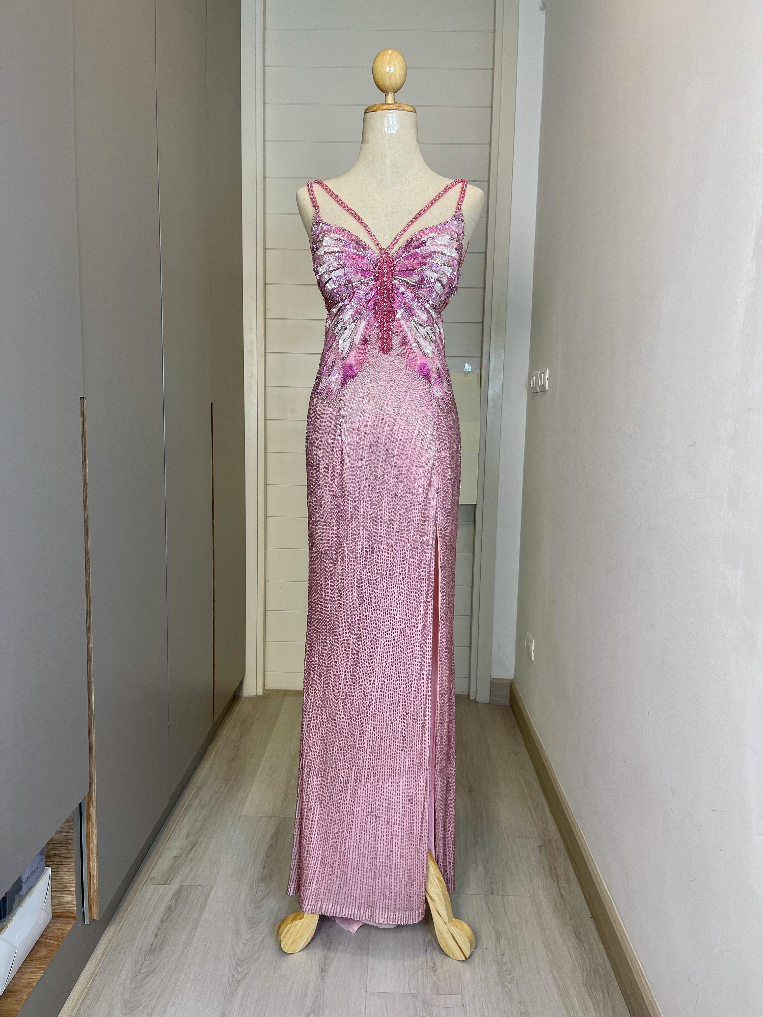 S07 Sherri Hill Pink Butterfly Evening Gown **ปิดการเช่าแล้ว**
