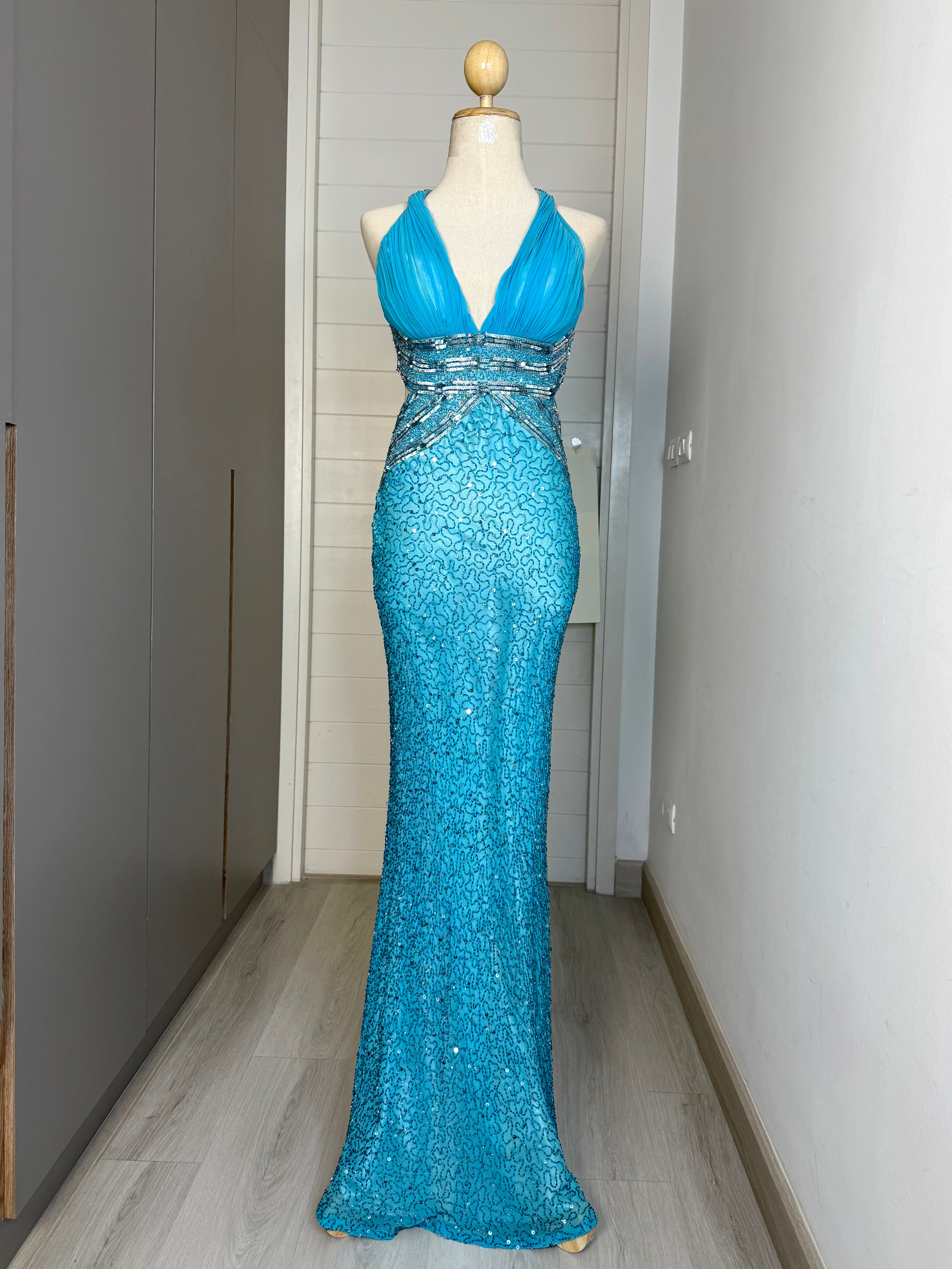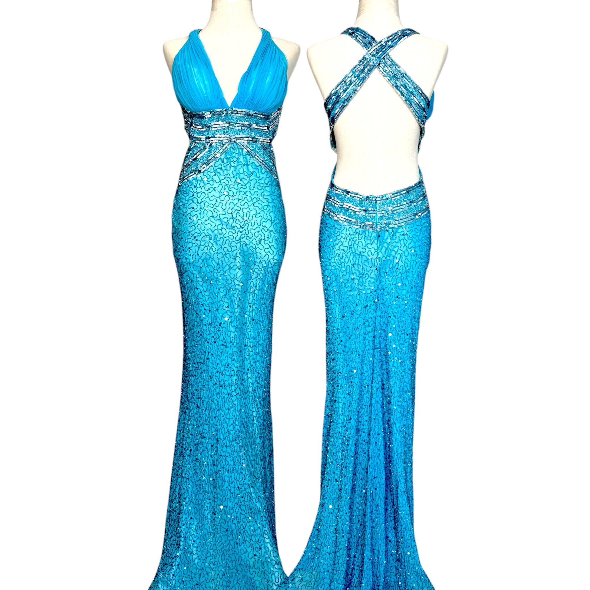 V59 Vintage Super Rare Cache Teal Evening Gown (S)
