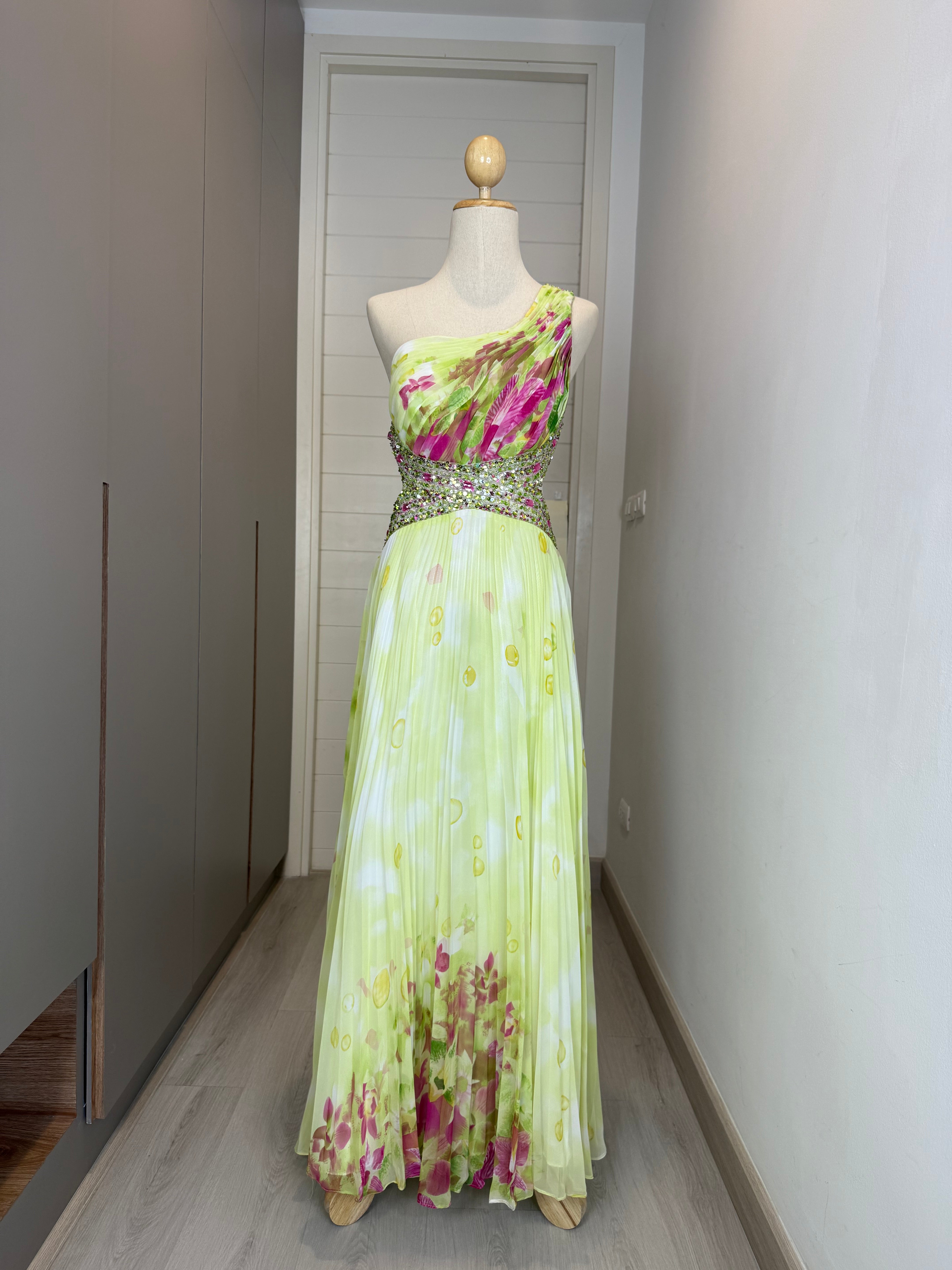 V175 Vintage Super Rare Lime Blossom Crystal Gown (M) (ถูกตัดความยาว สั้นกว่าตัวอื่น)