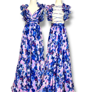 M14 Mac Duggal Blue Floral Evening Gown (XS-S)