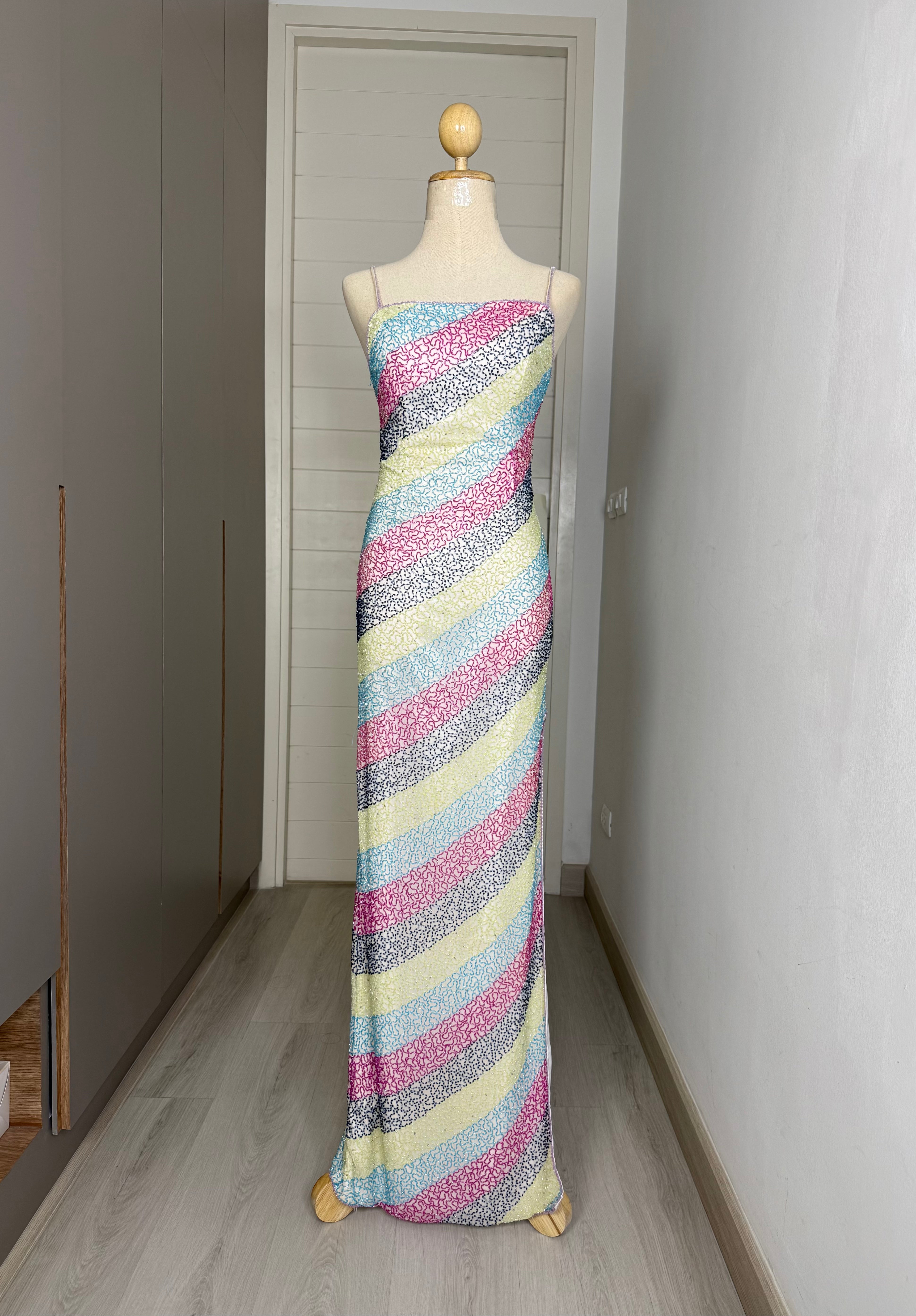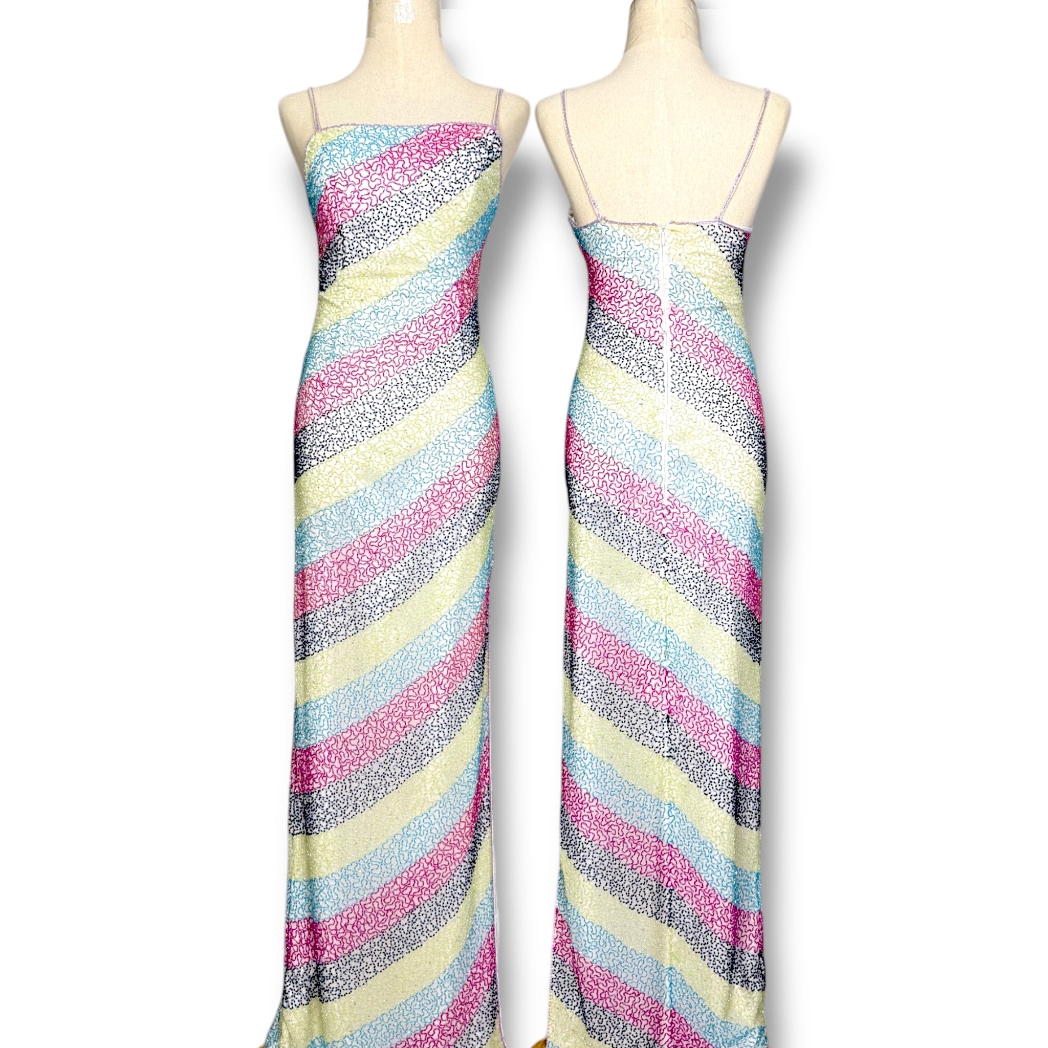 V69 Vintage Super Rare La Femme Rainbow Evening Gown (XS)