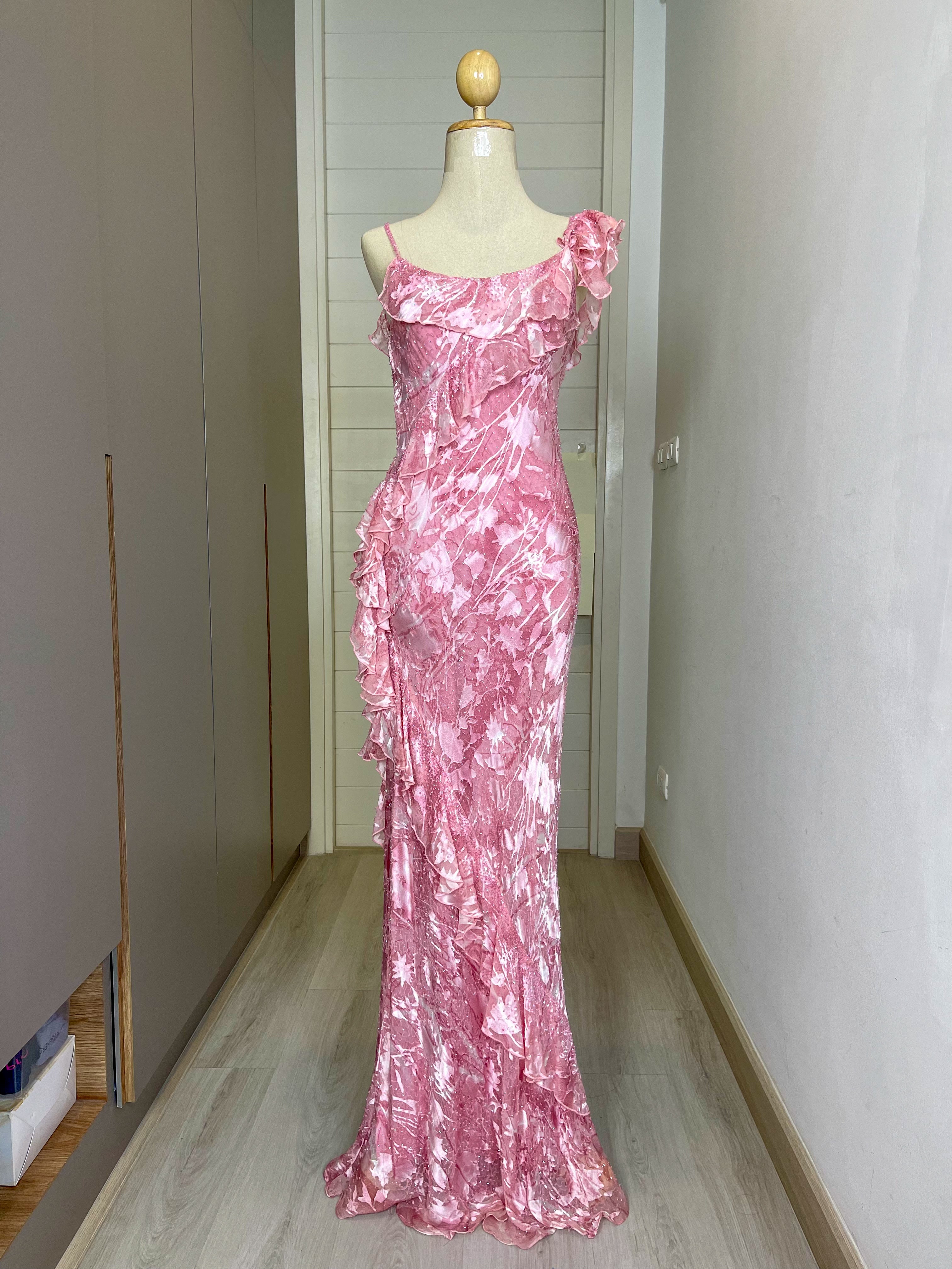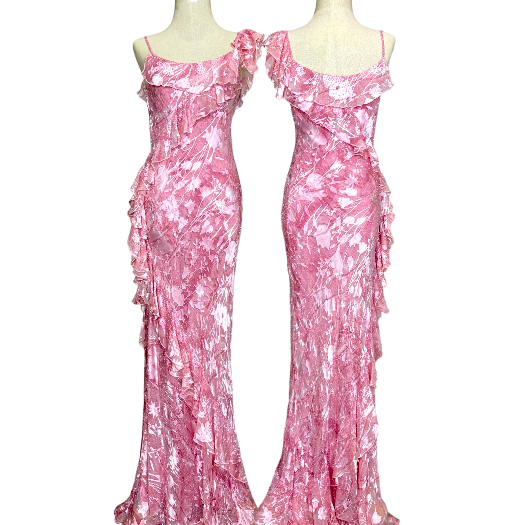 D06 Dave & Johnny Pink Floral Evening Gown (XS-S)