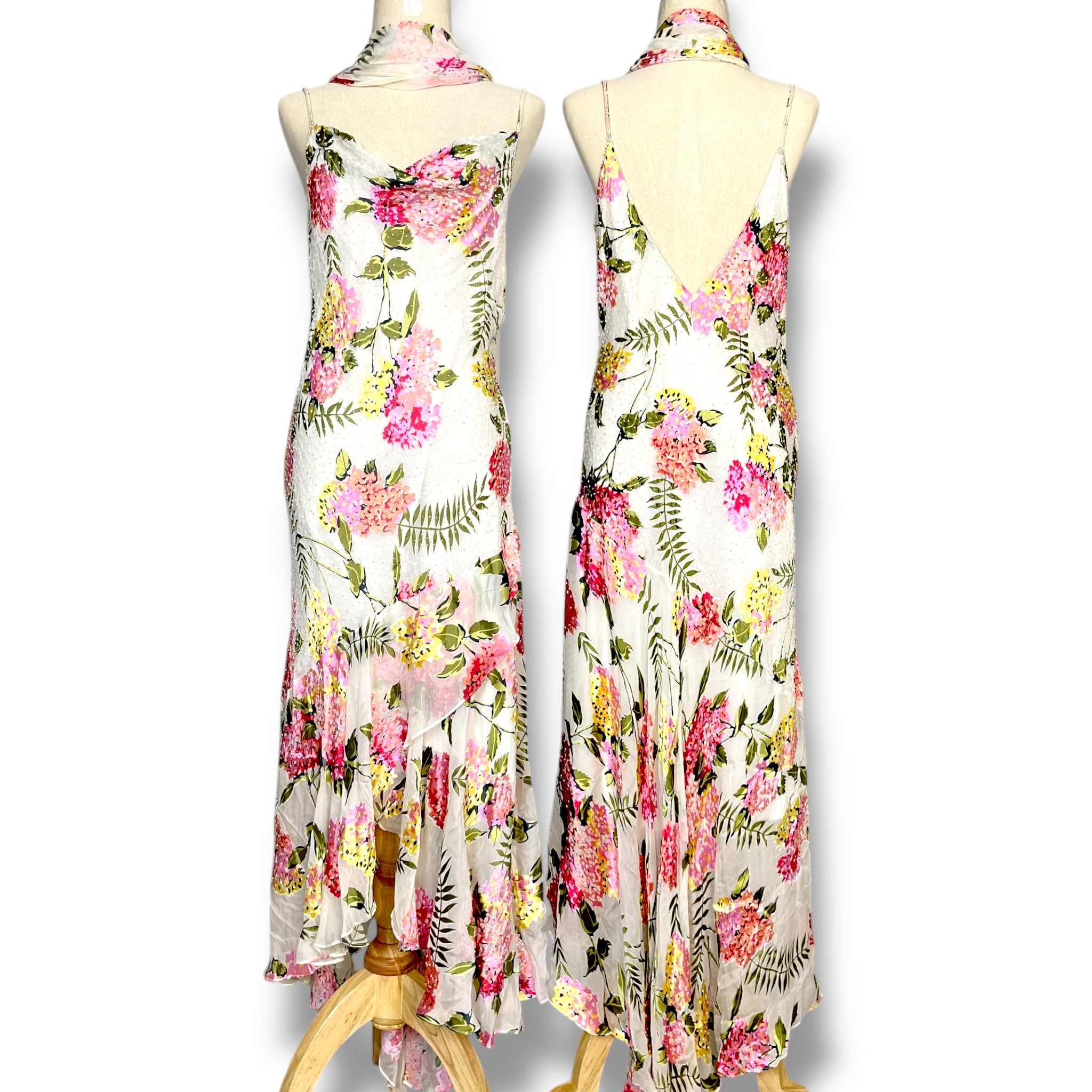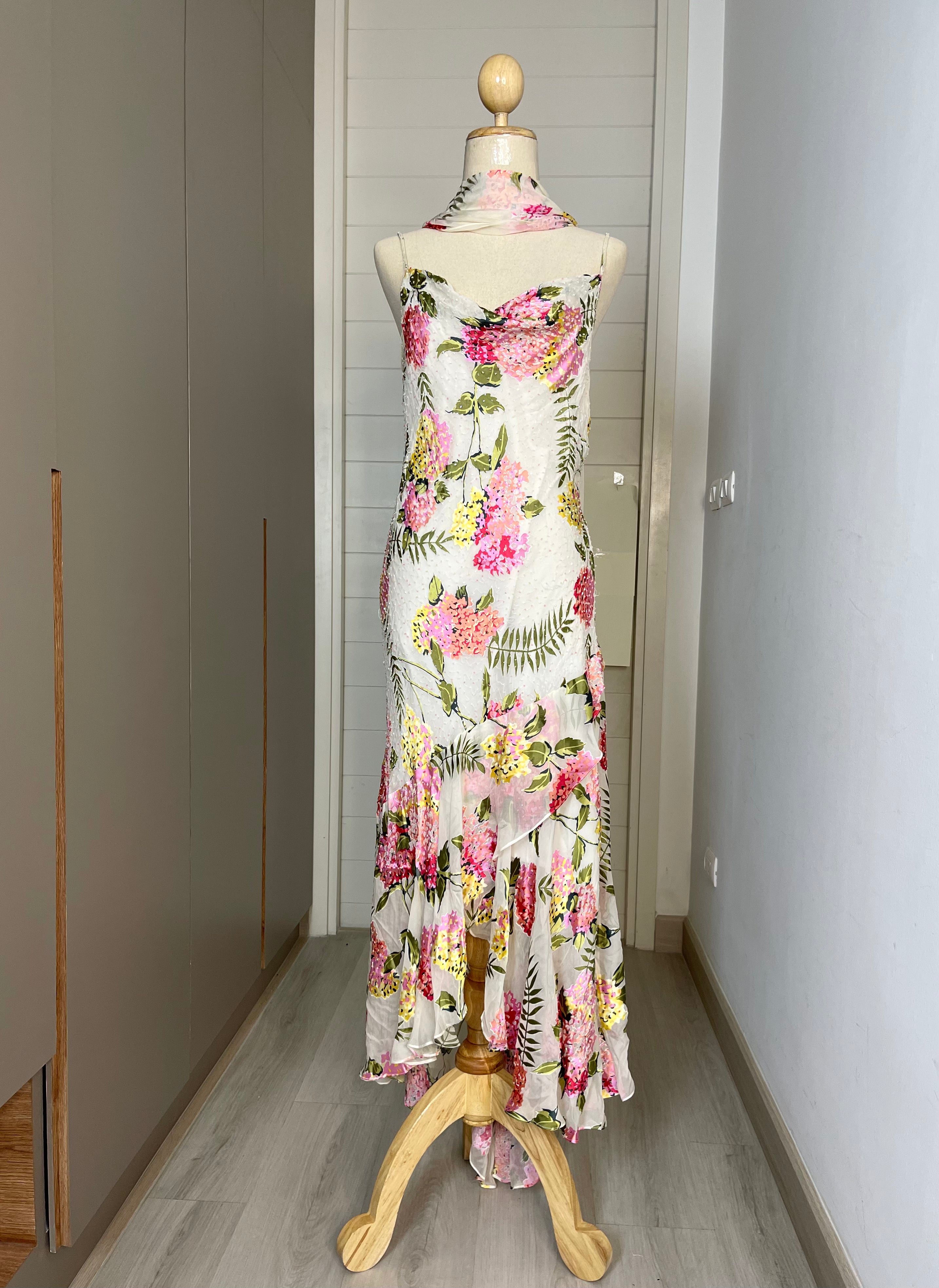 V38 Vintage Super Rare Find Sue Wong White Floral Evening Dress ** ปิดการเช่าแล้ว**