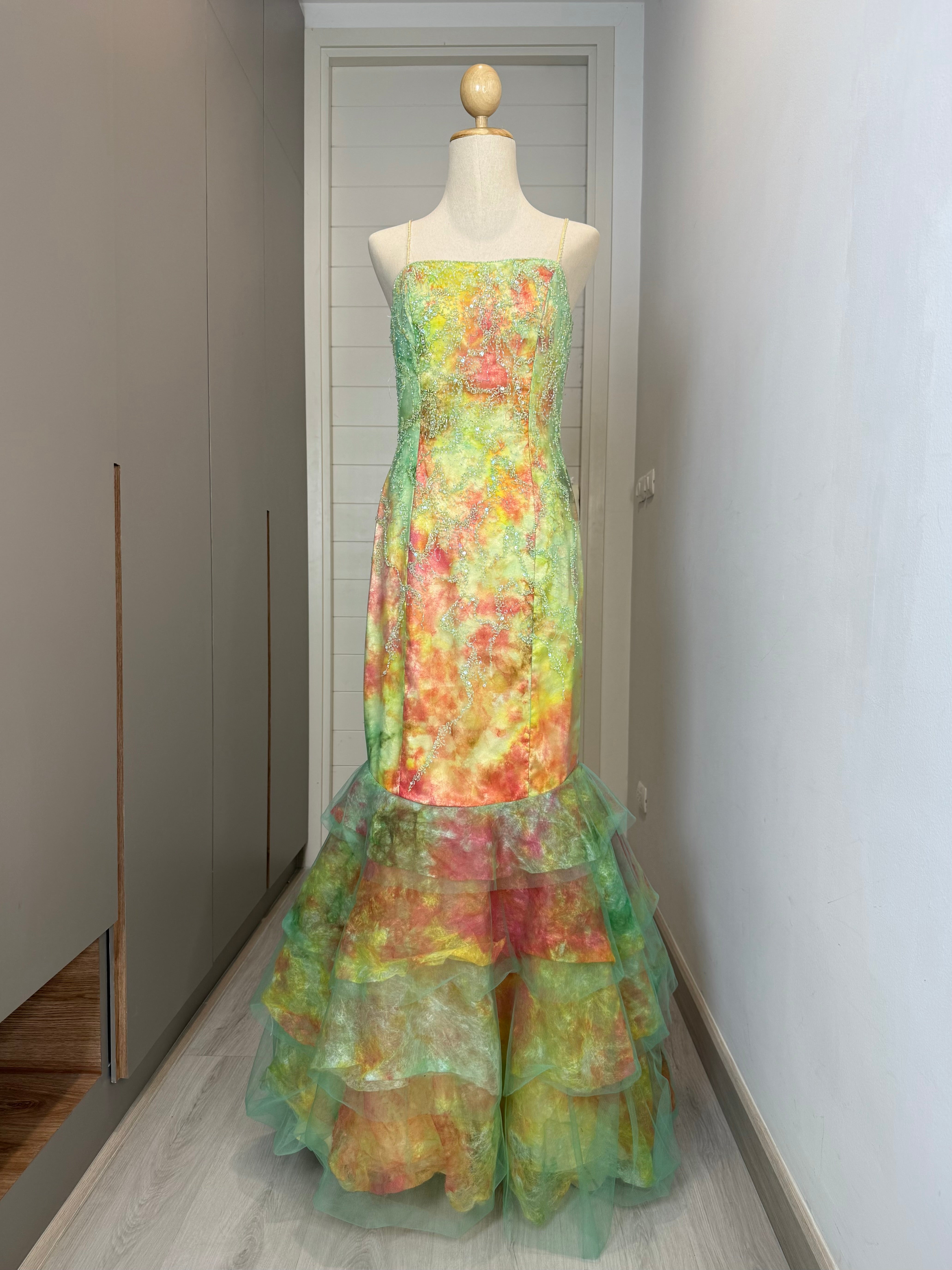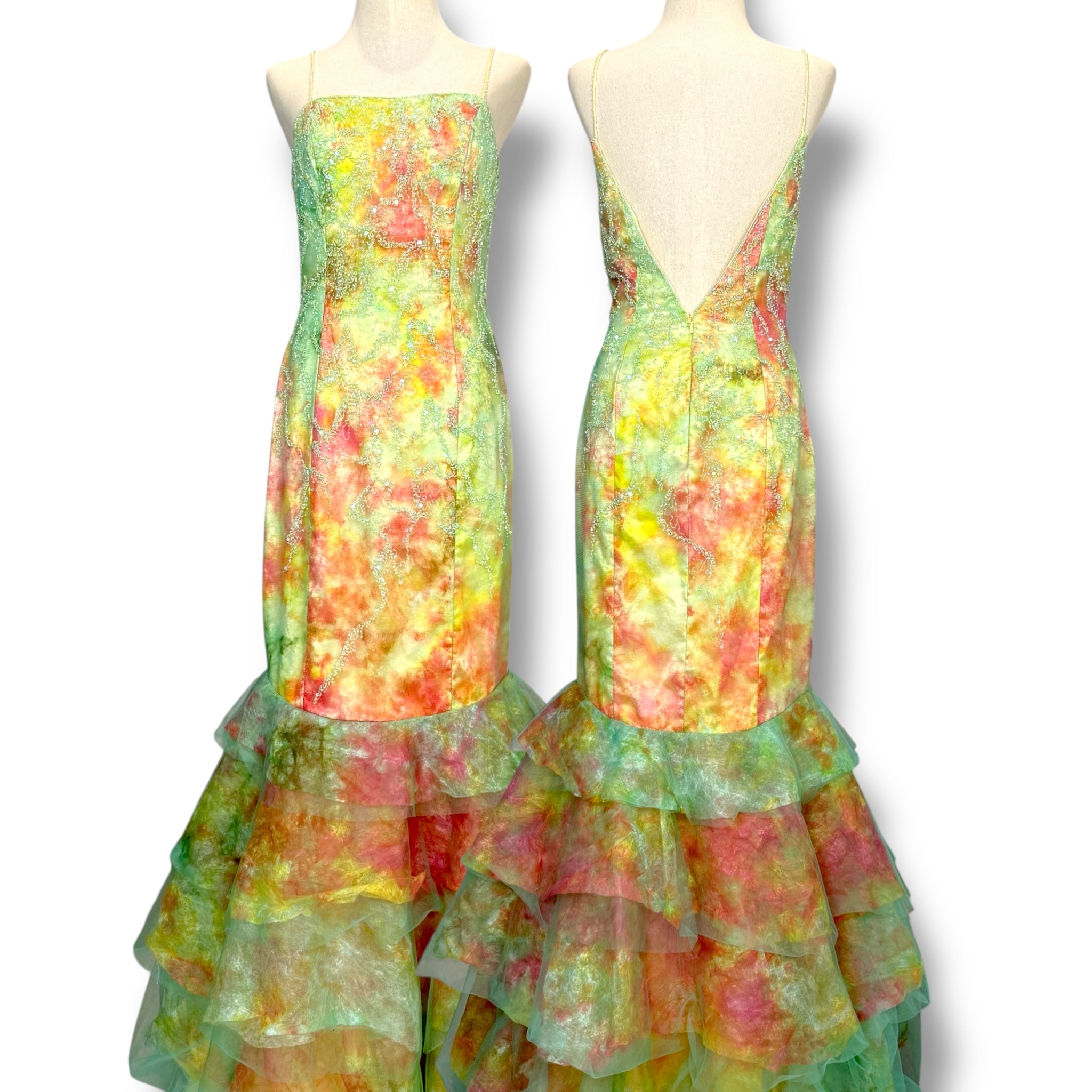 V209 Vintage Precious Formals Citrus Bloom Mermaid Dress (S-M)