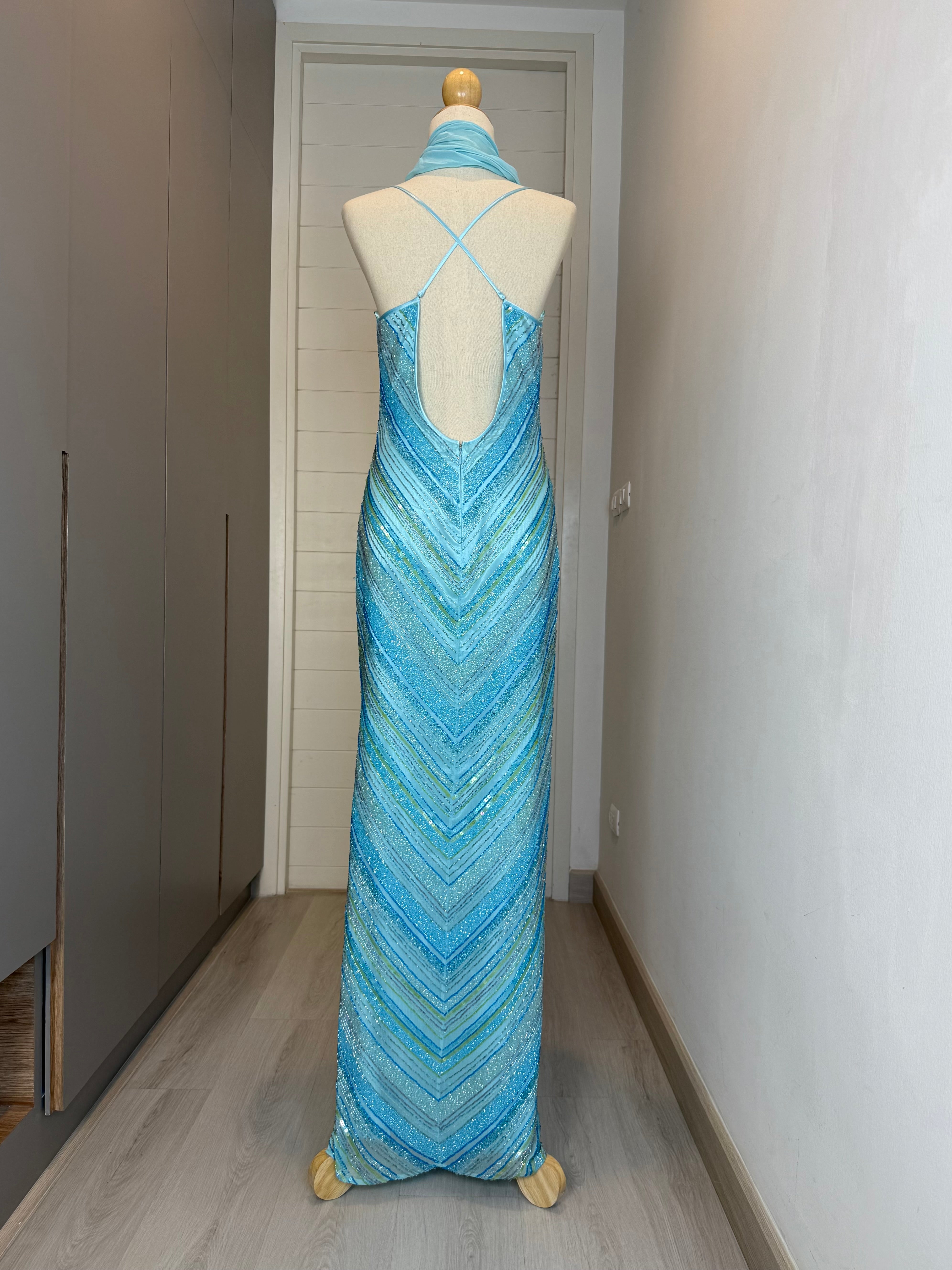 V51 Vintage Scala Baby Blue Evening Gown (M-L)
