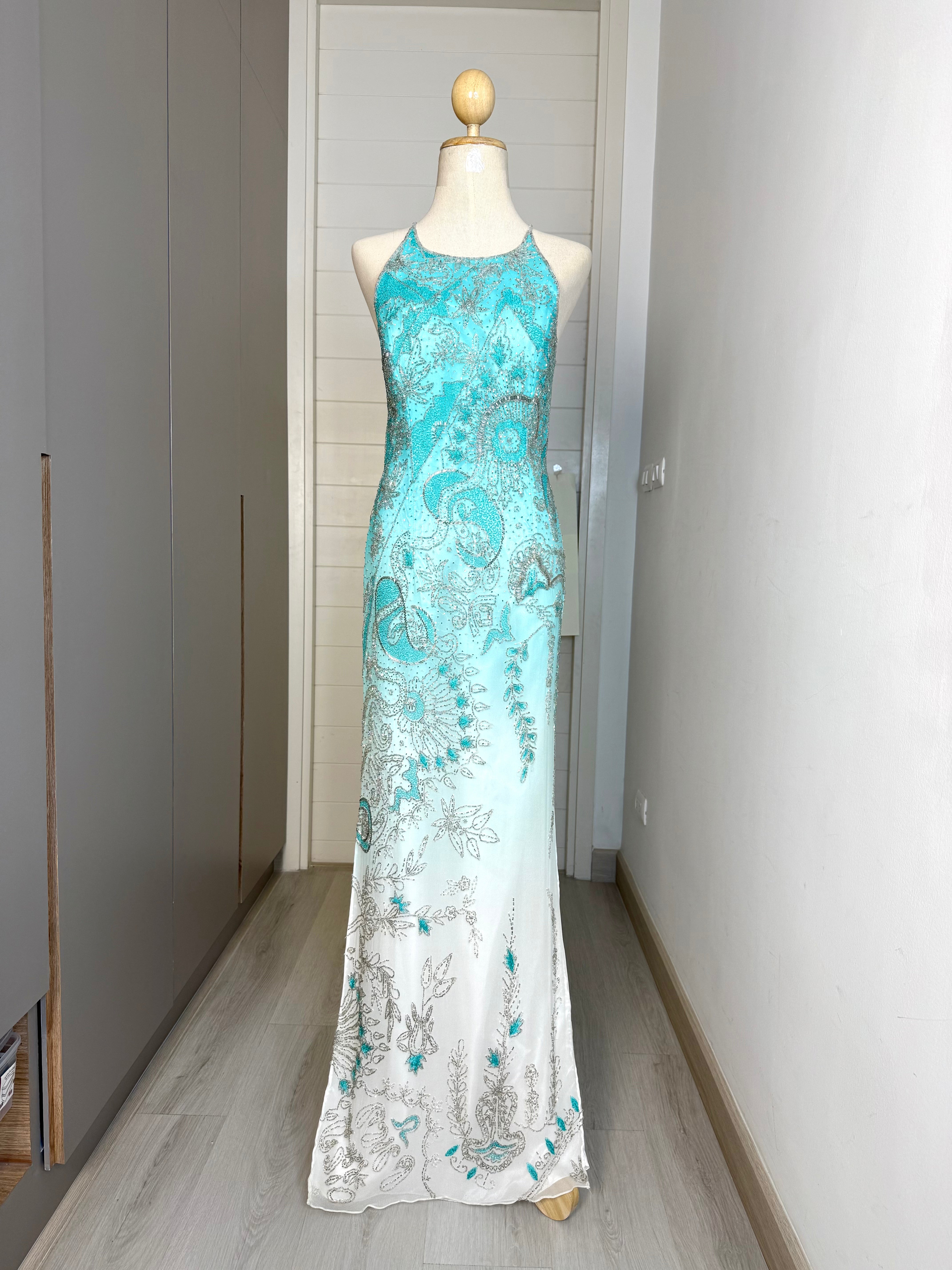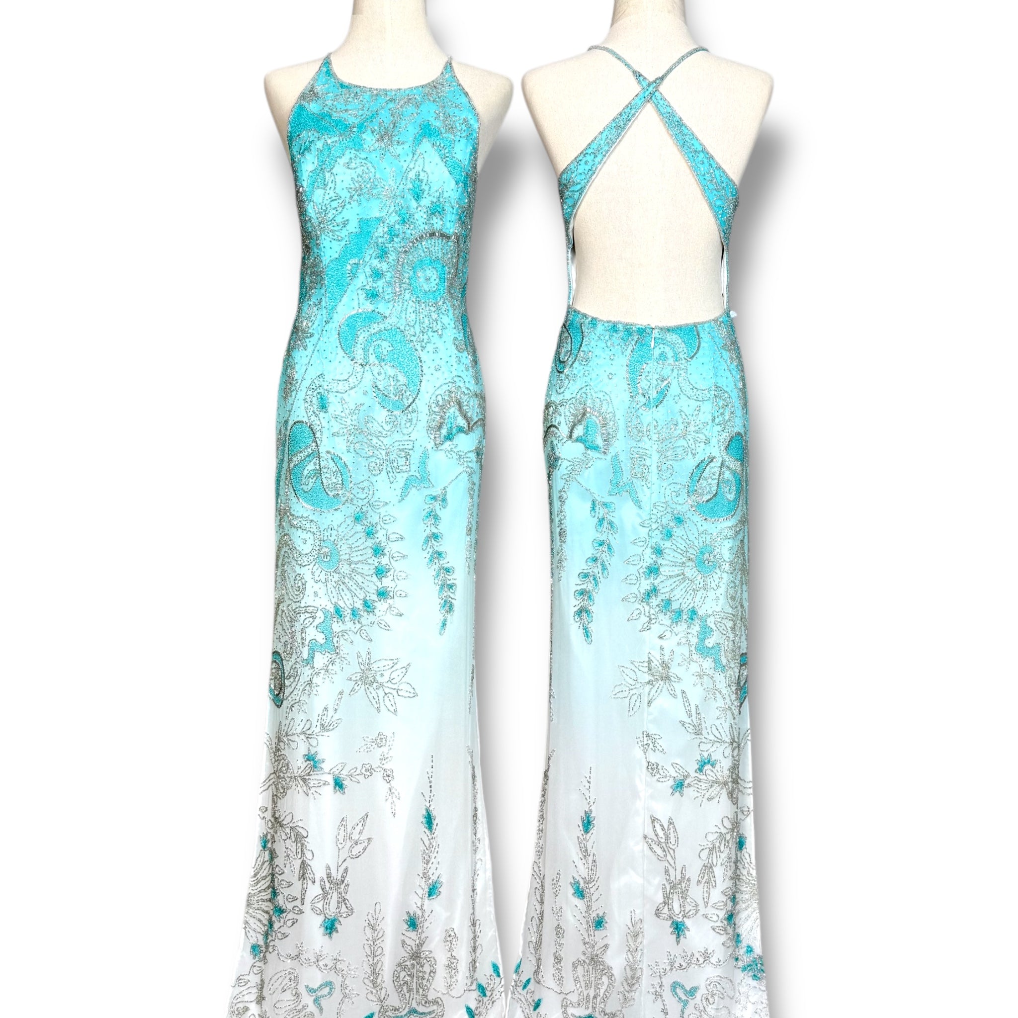 V61 Vintage Mia Bella Blue Ombre Evening Gown (S-M)