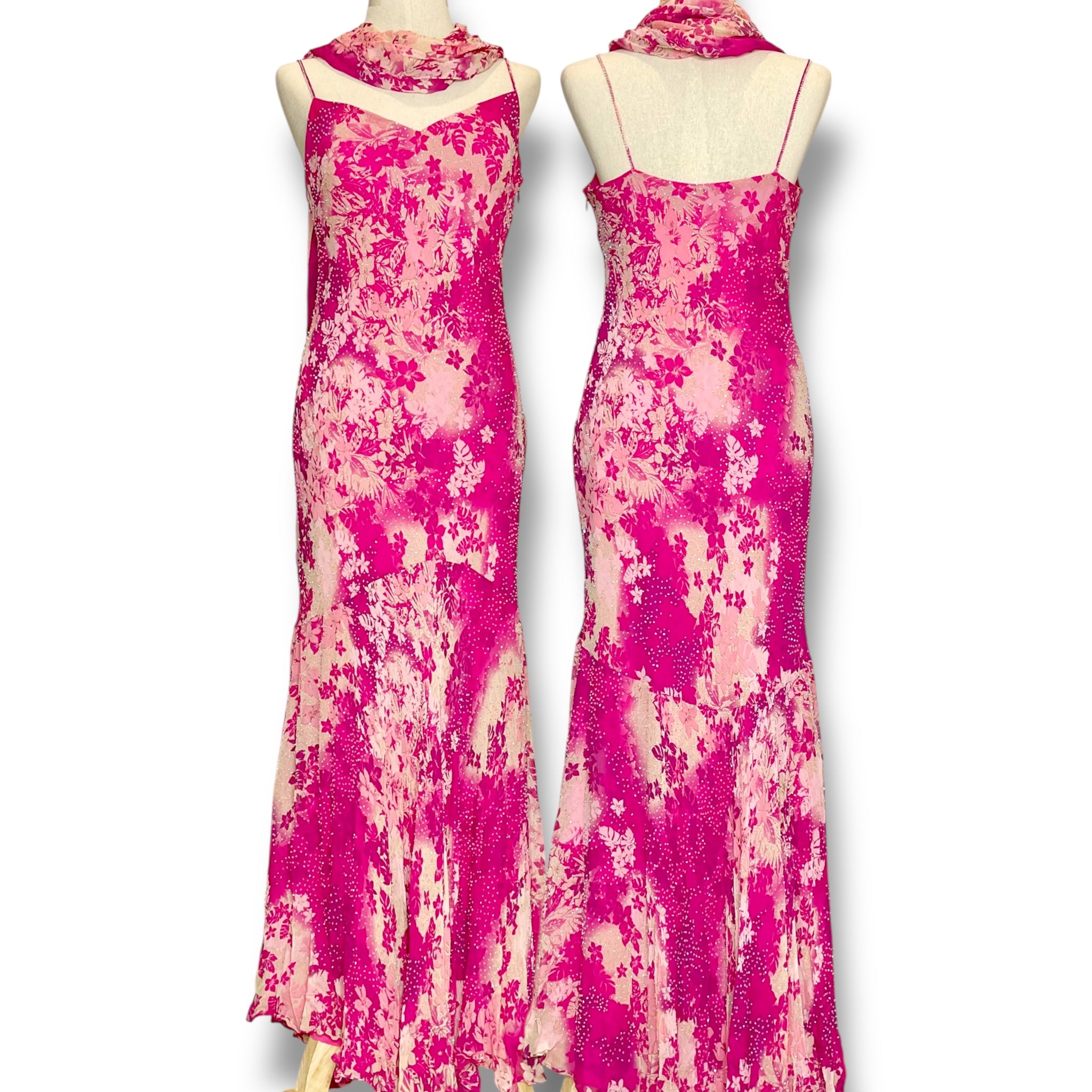 V25 Vintage Super Rare Floral Shock Pink Evening Dress (S-M)