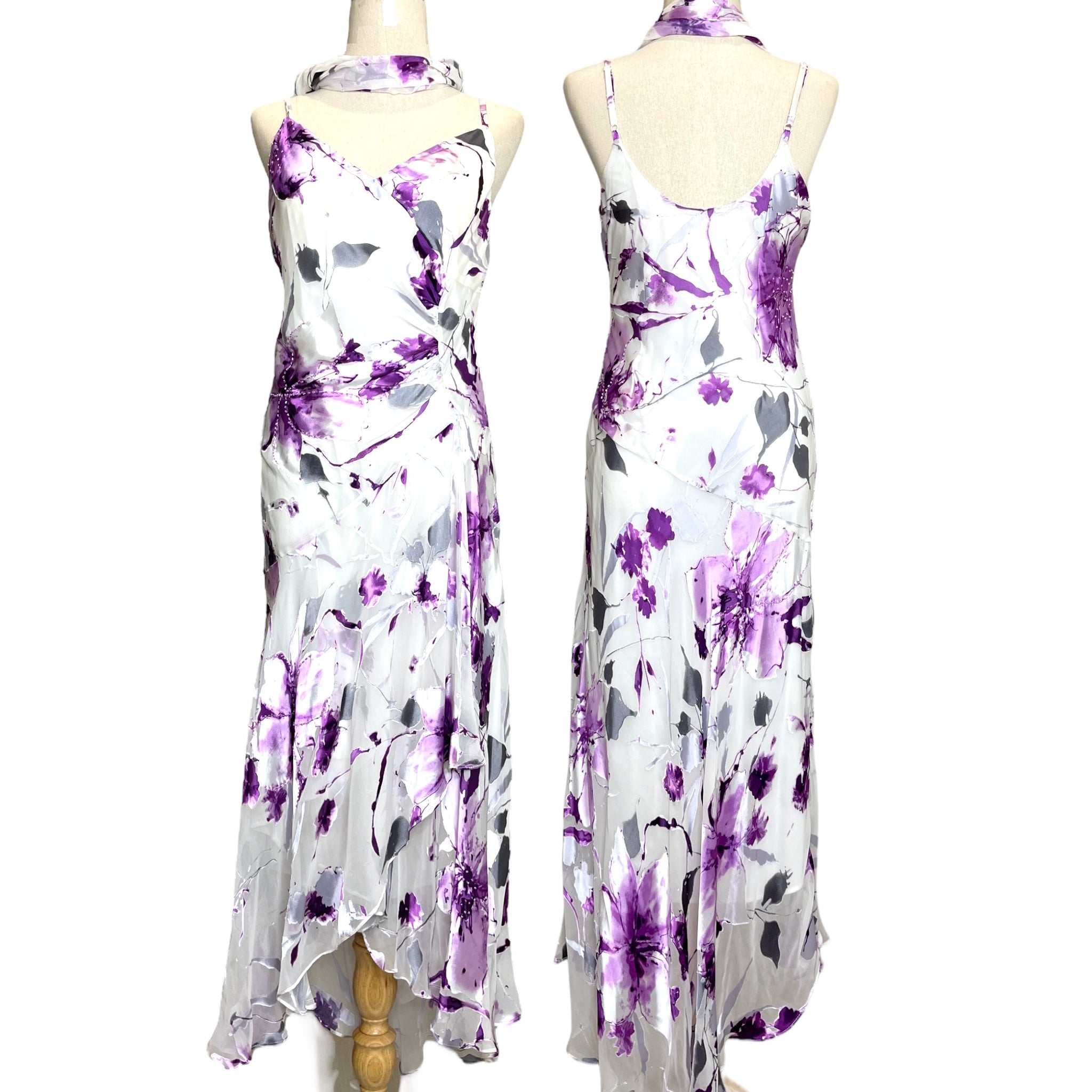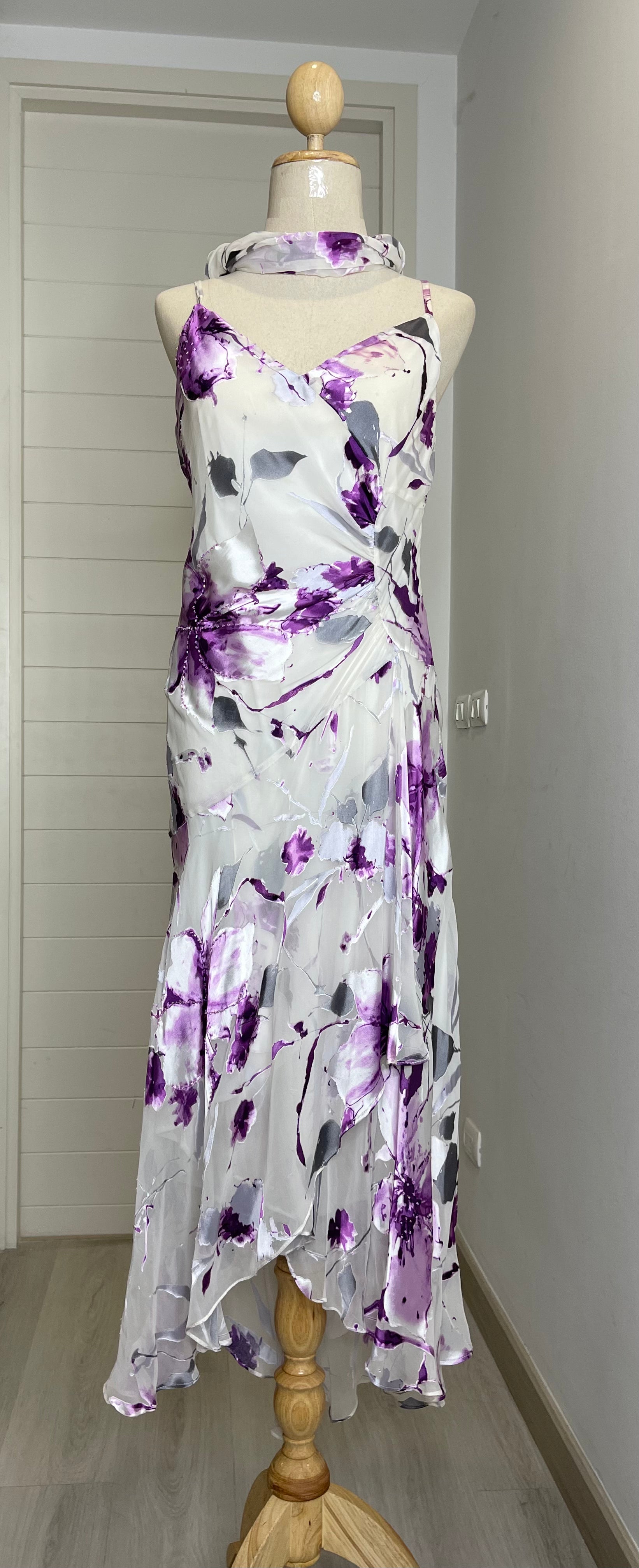 V15 Vintage Adriella London White & Purple Evening Dress (S-M)