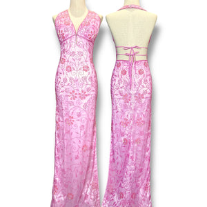 V139 Vintage Super Rare Sean Collection Pink Beaded Halter Gown (XS)
