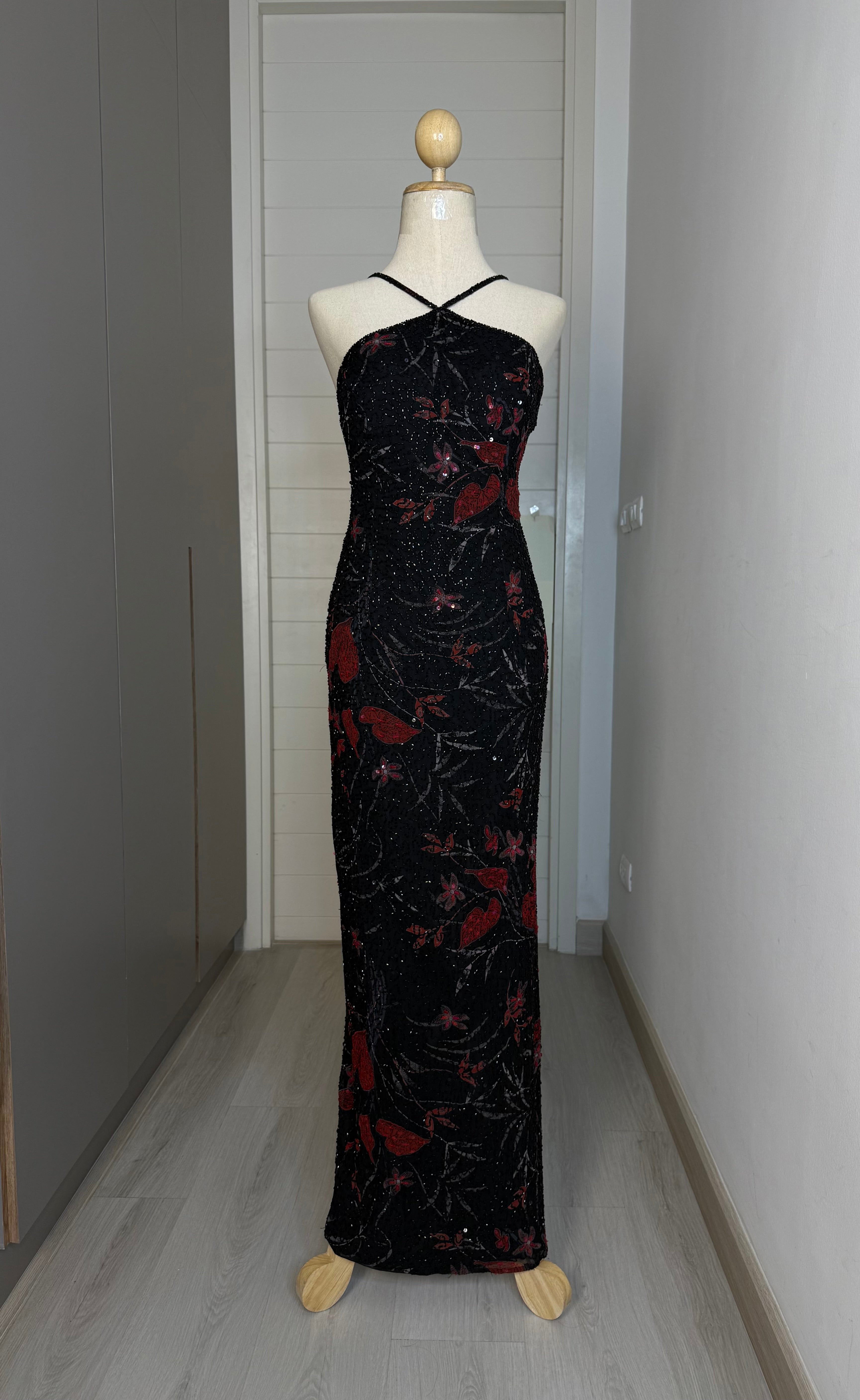 P06 Vintage Primavera Midnight Bloom Evening Gown (S-M)