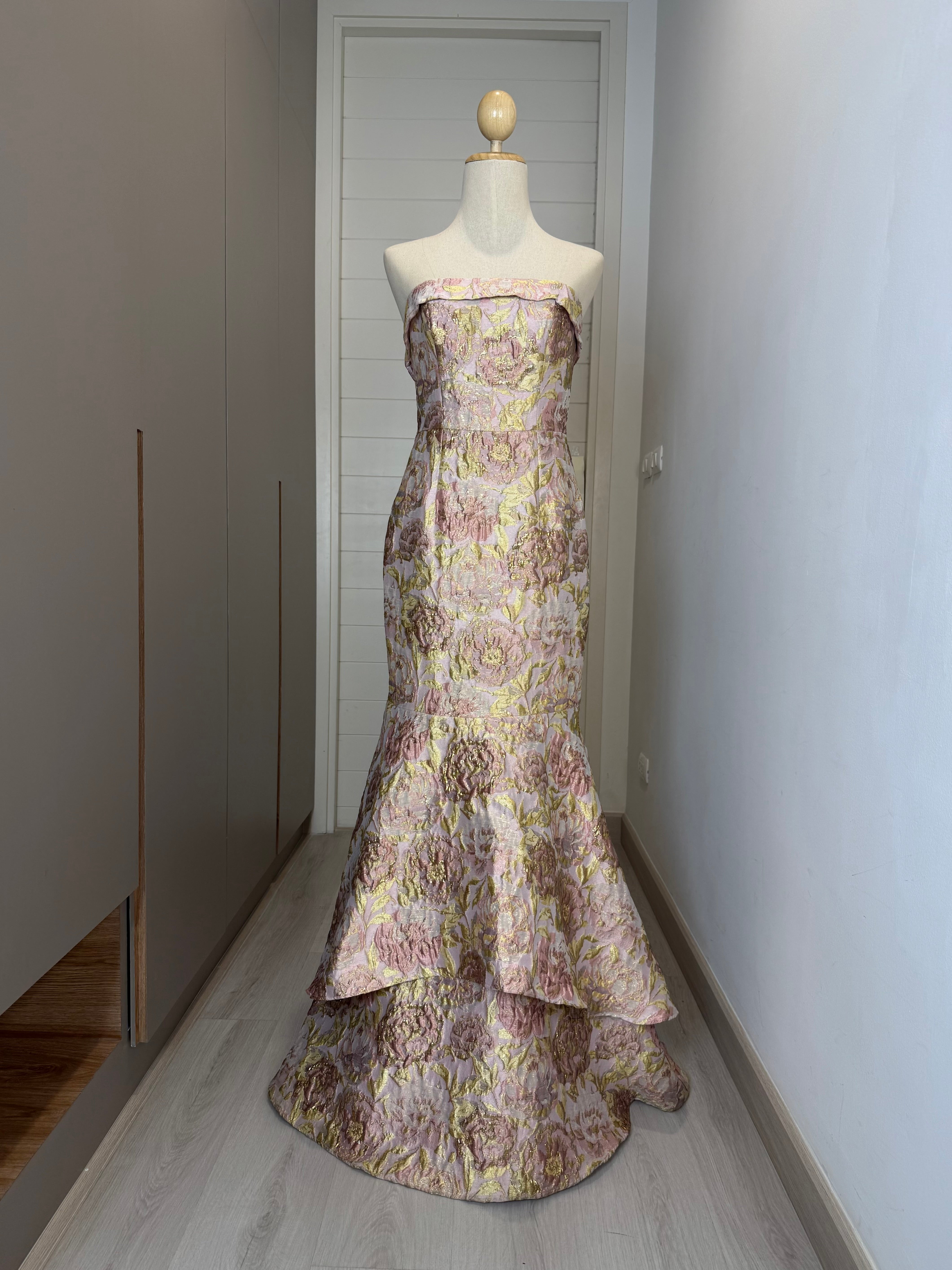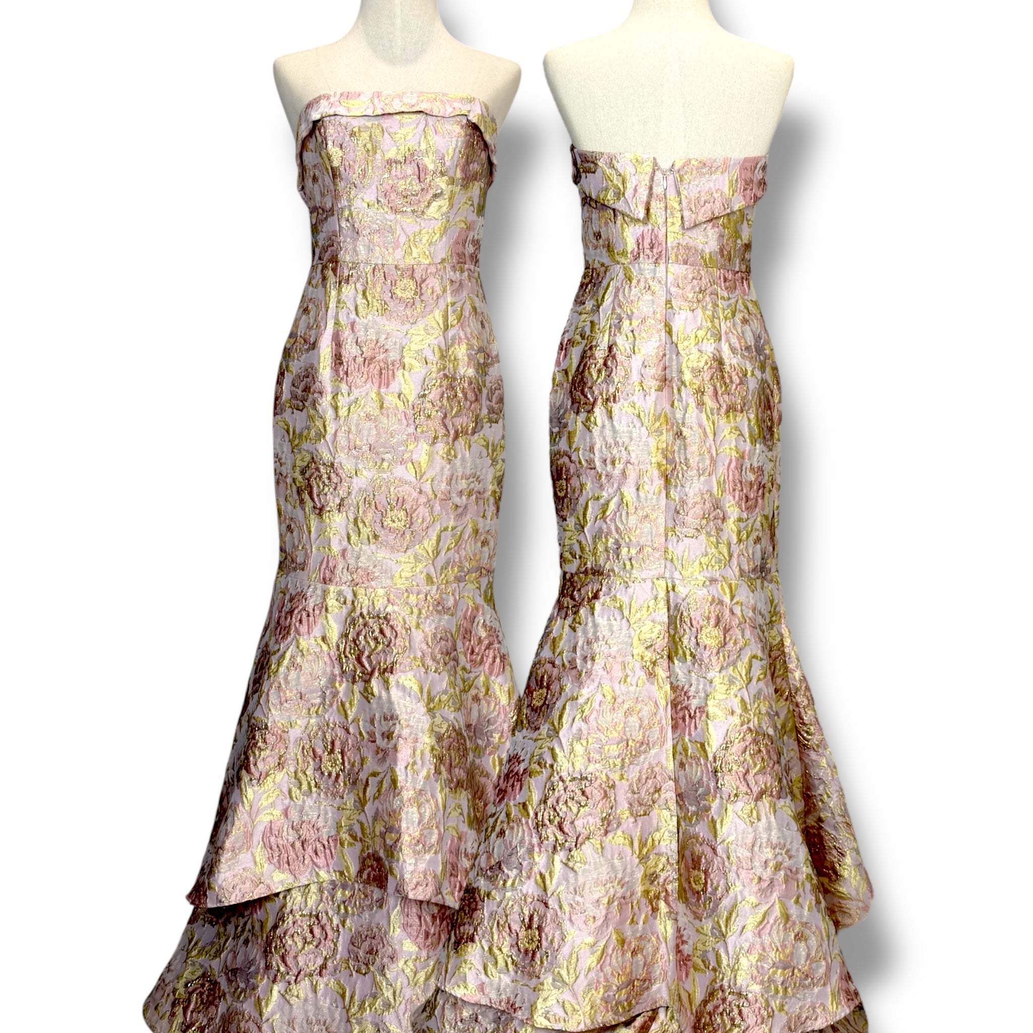V203 Vintage Style Rosé Brocade Strapless Dress (XS-S)