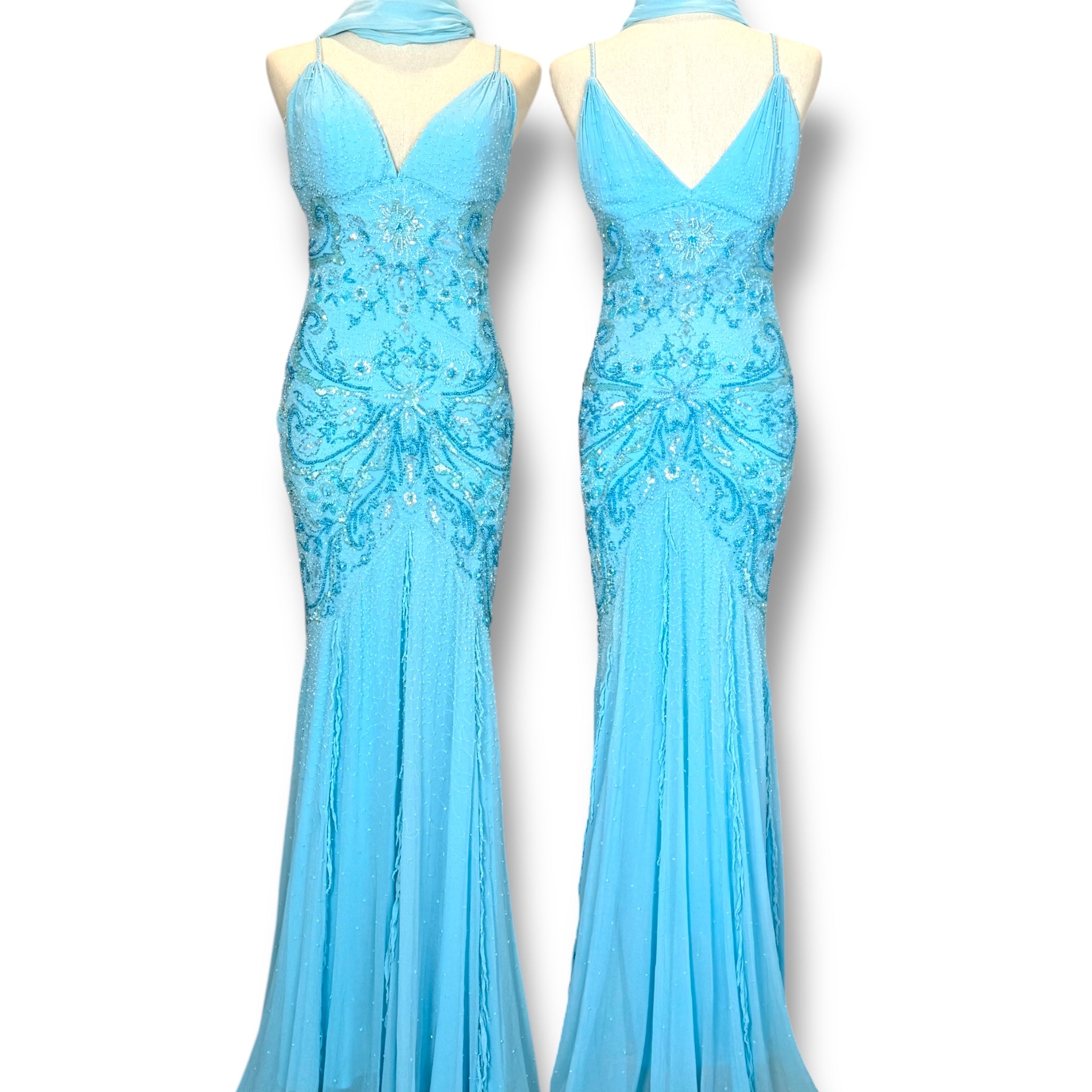 V198 Vintage Aqua Garden Sequin Dress (XS-S)