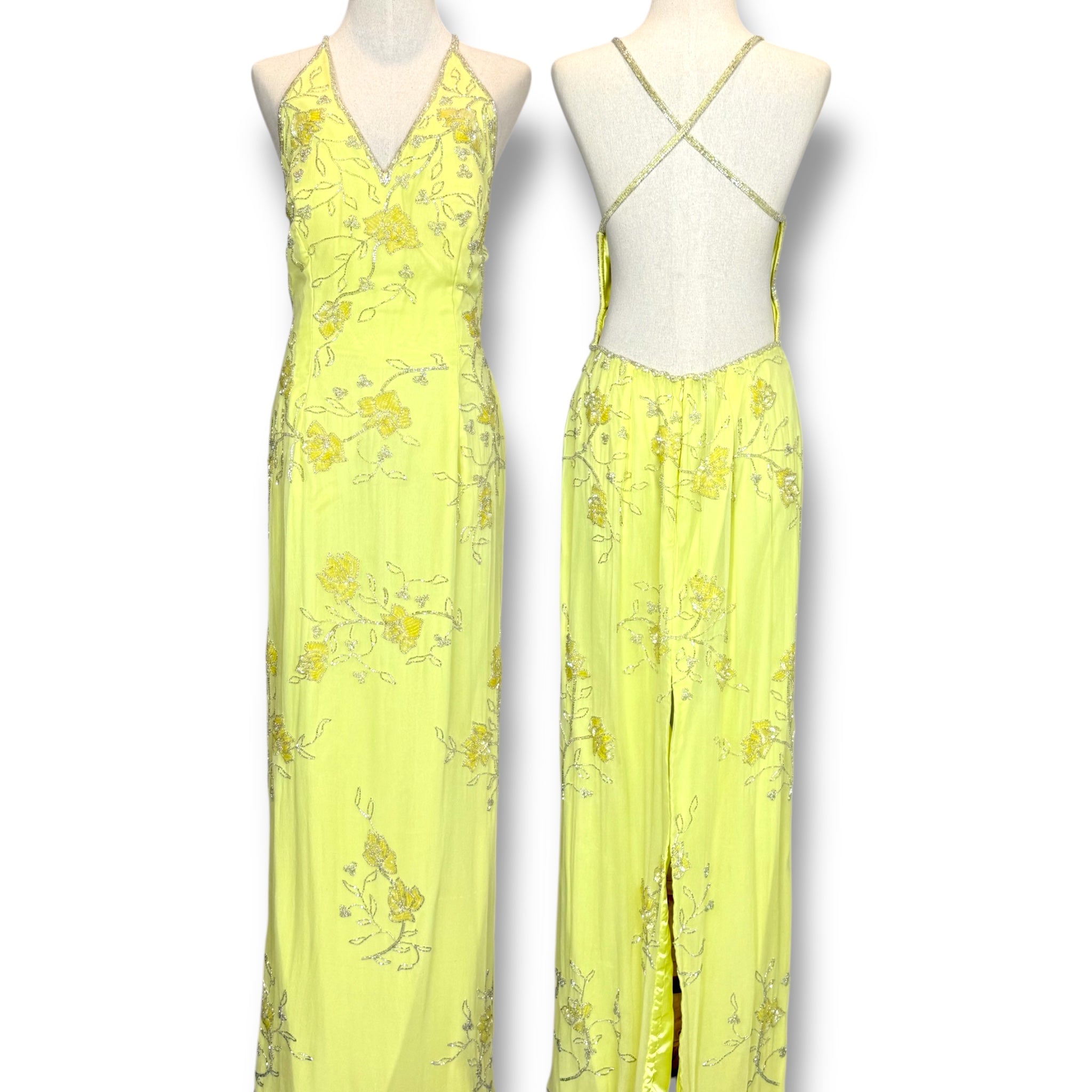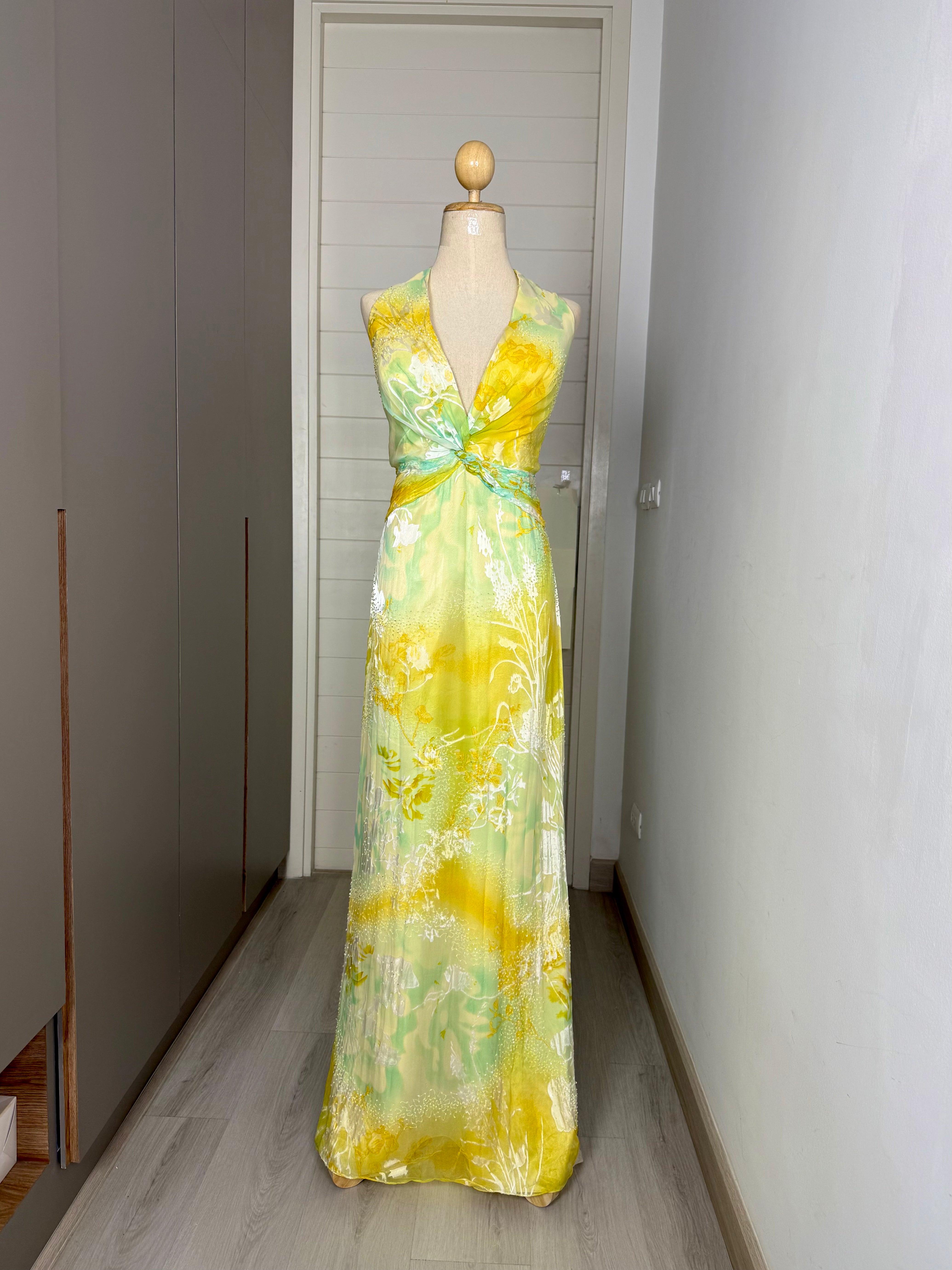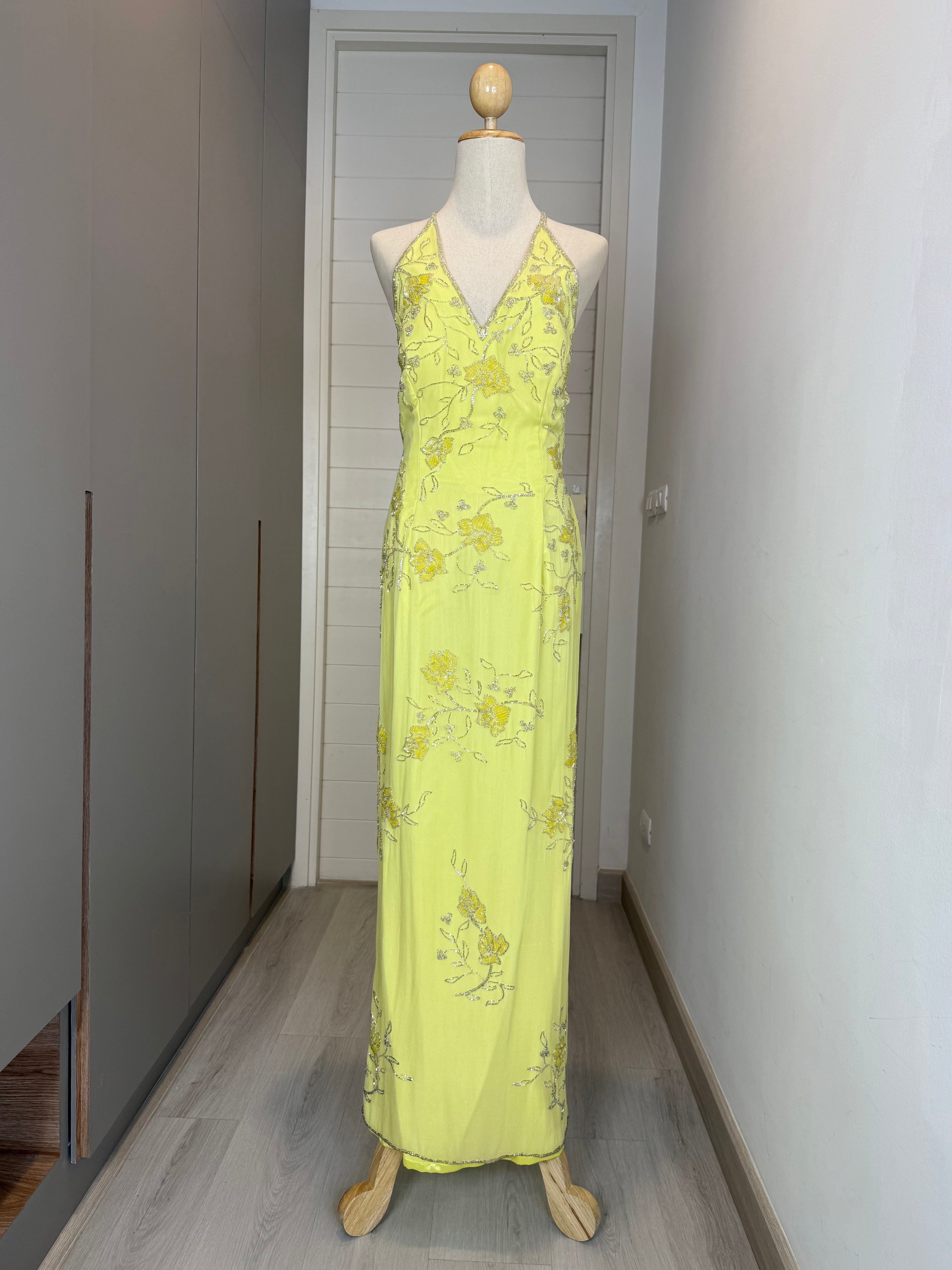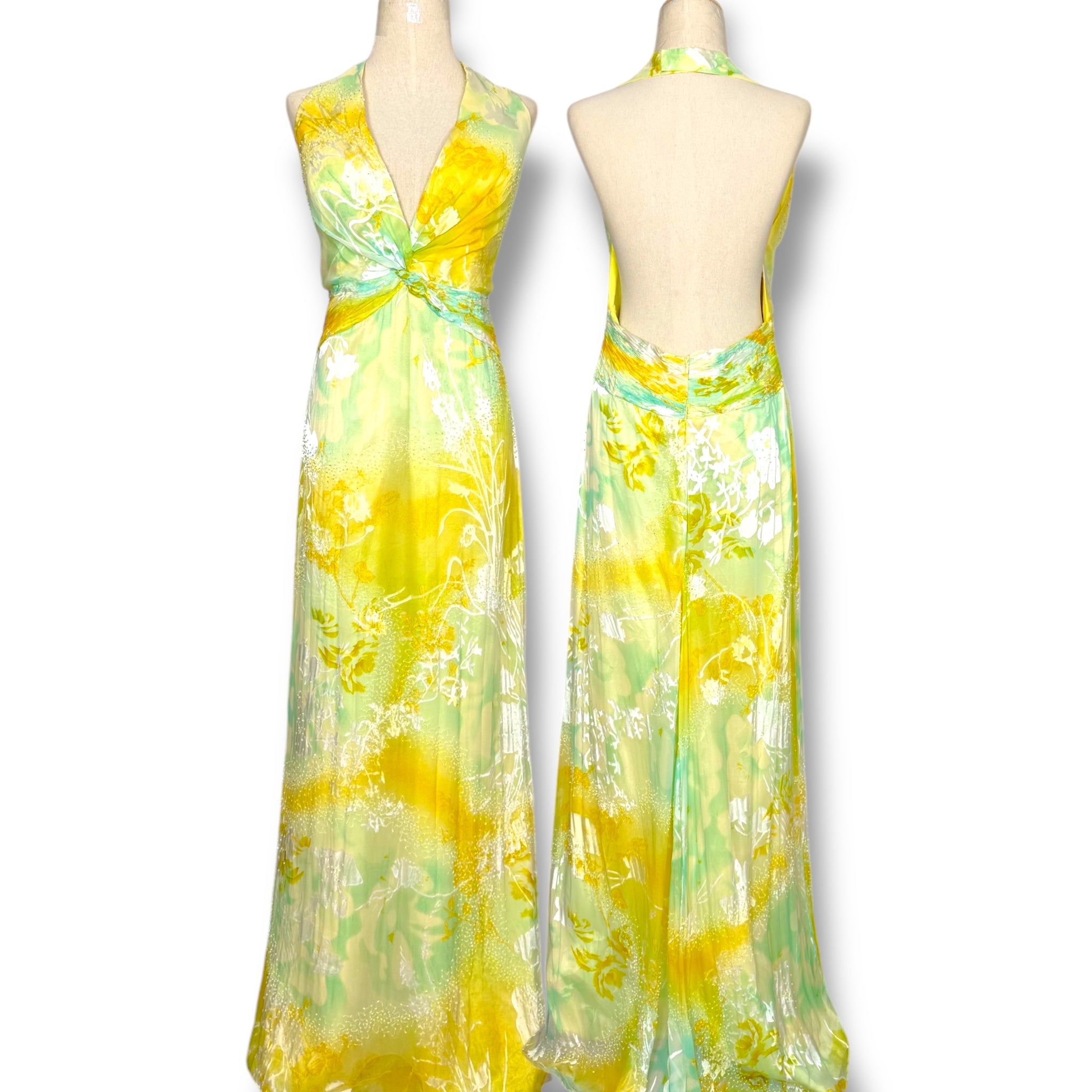 V97 Vintage Burnout Halter Gown Yellow-Green Ombre (M-L)